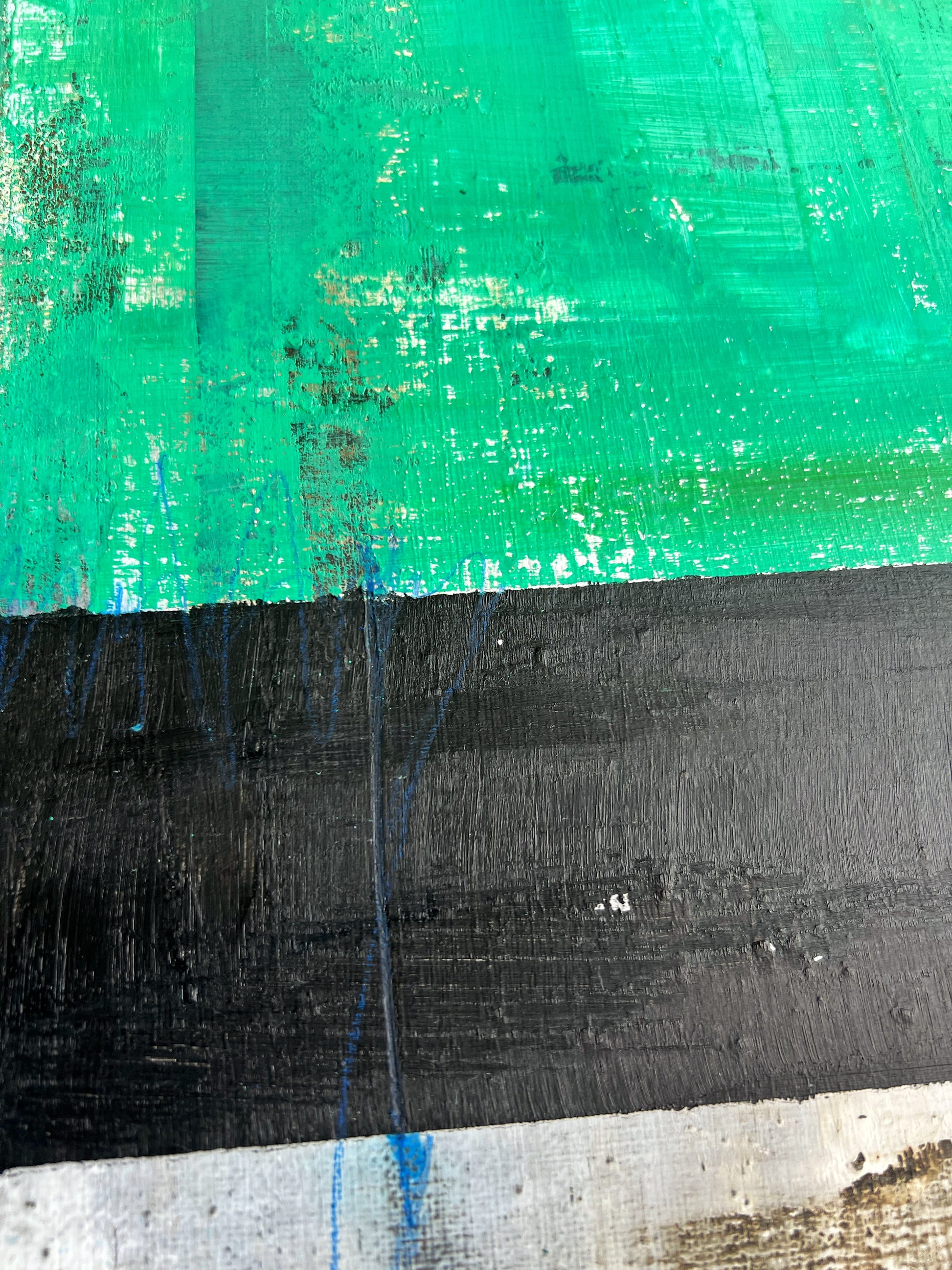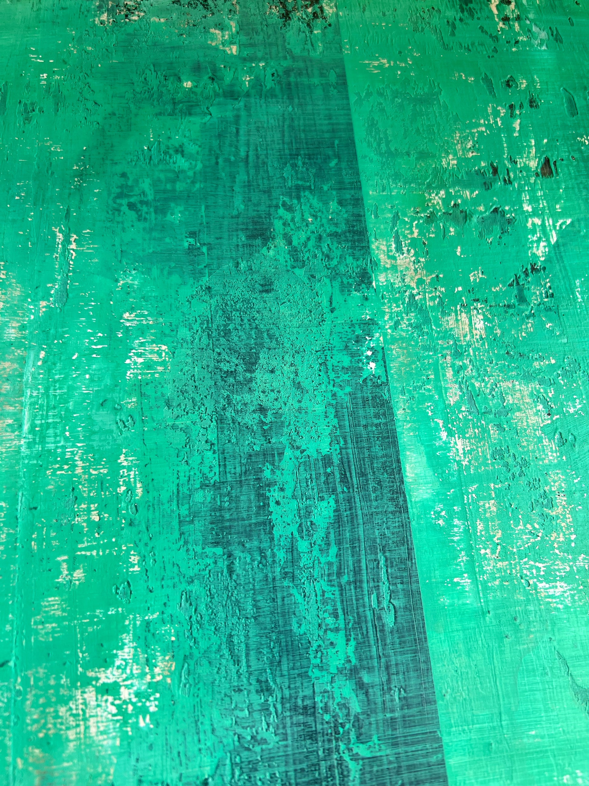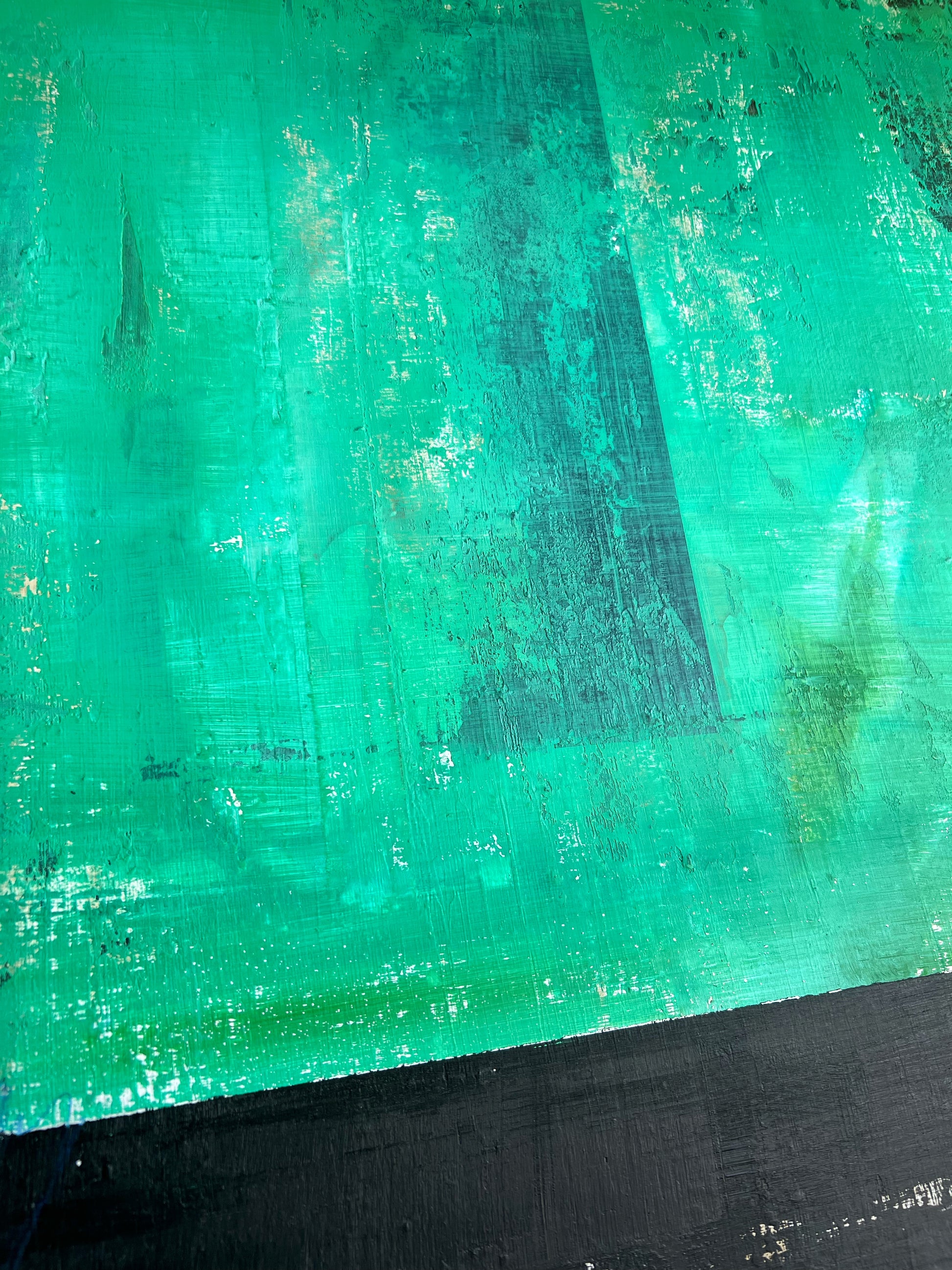 Aquestes obres úniques combinen tècniques de mitjans mixtos, amb textures creades a partir de gesso, serradures, acrílics i pigments barrejats a mà, resultant en superfícies estratificades que revelen la bellesa de la imperfecció i la transformació.