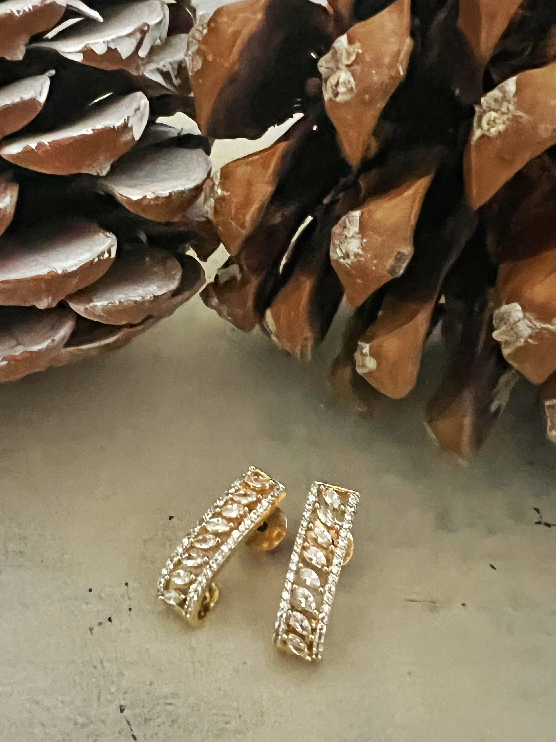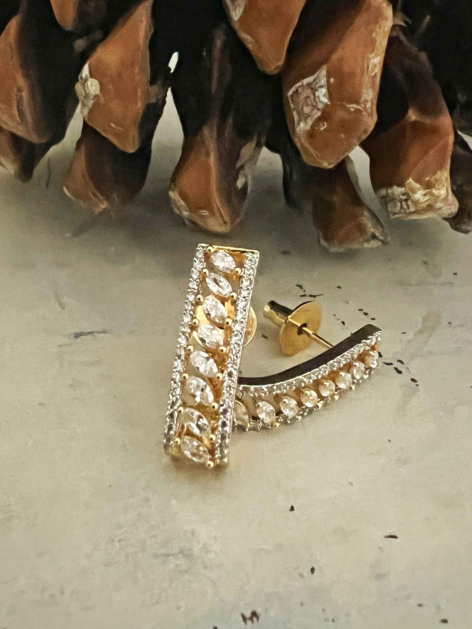 Pendientes de Latón Chapados en Oro Amarillo con Diamantes Americanos de Distintos Cortes