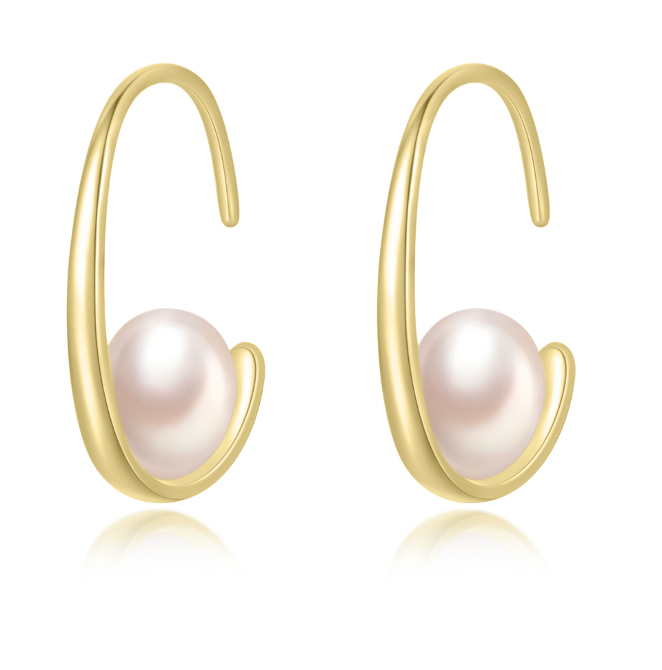 Pendientes Geométricos con Perla Cultivada — Plata de Ley 925 Bañada en Oro de 18k