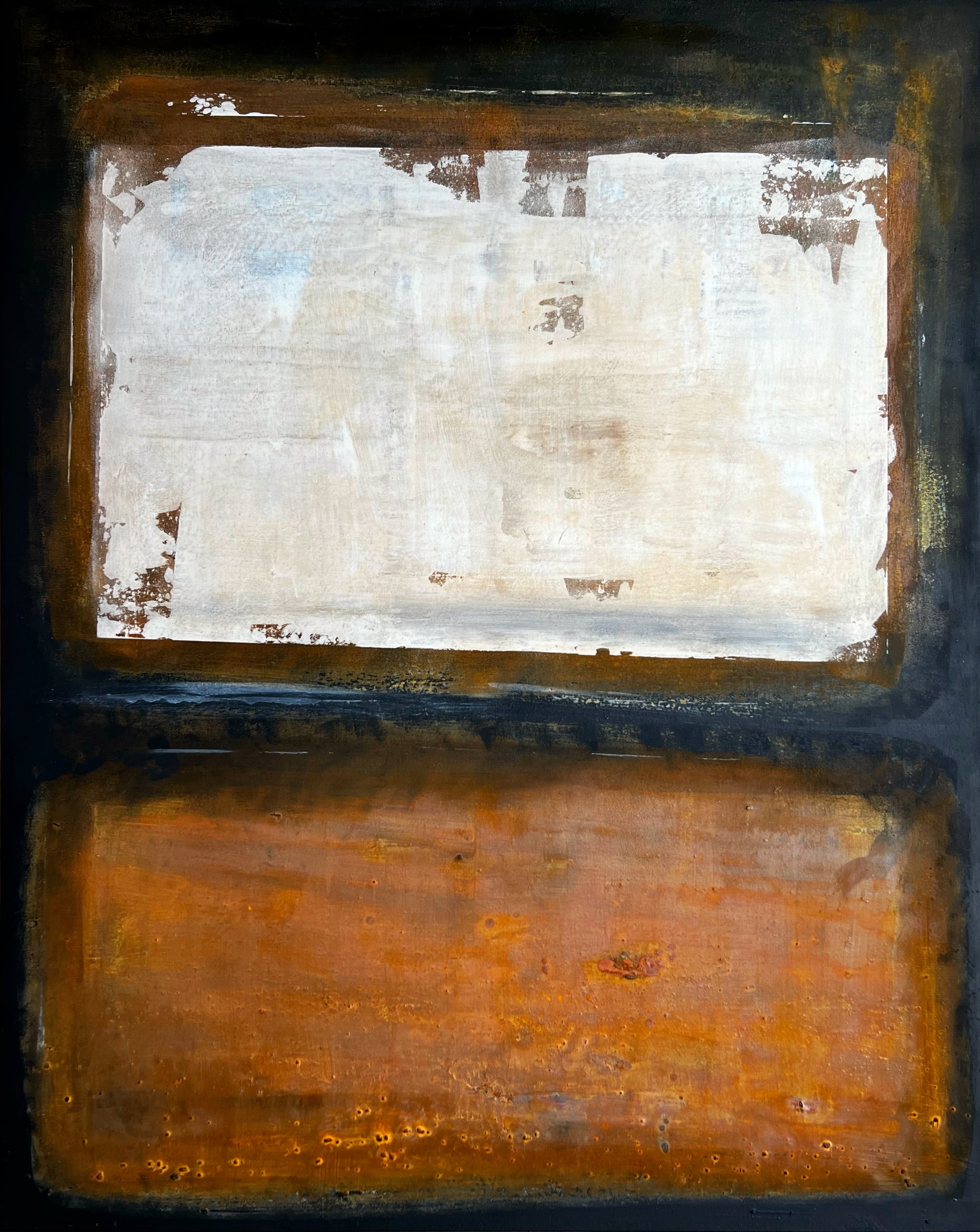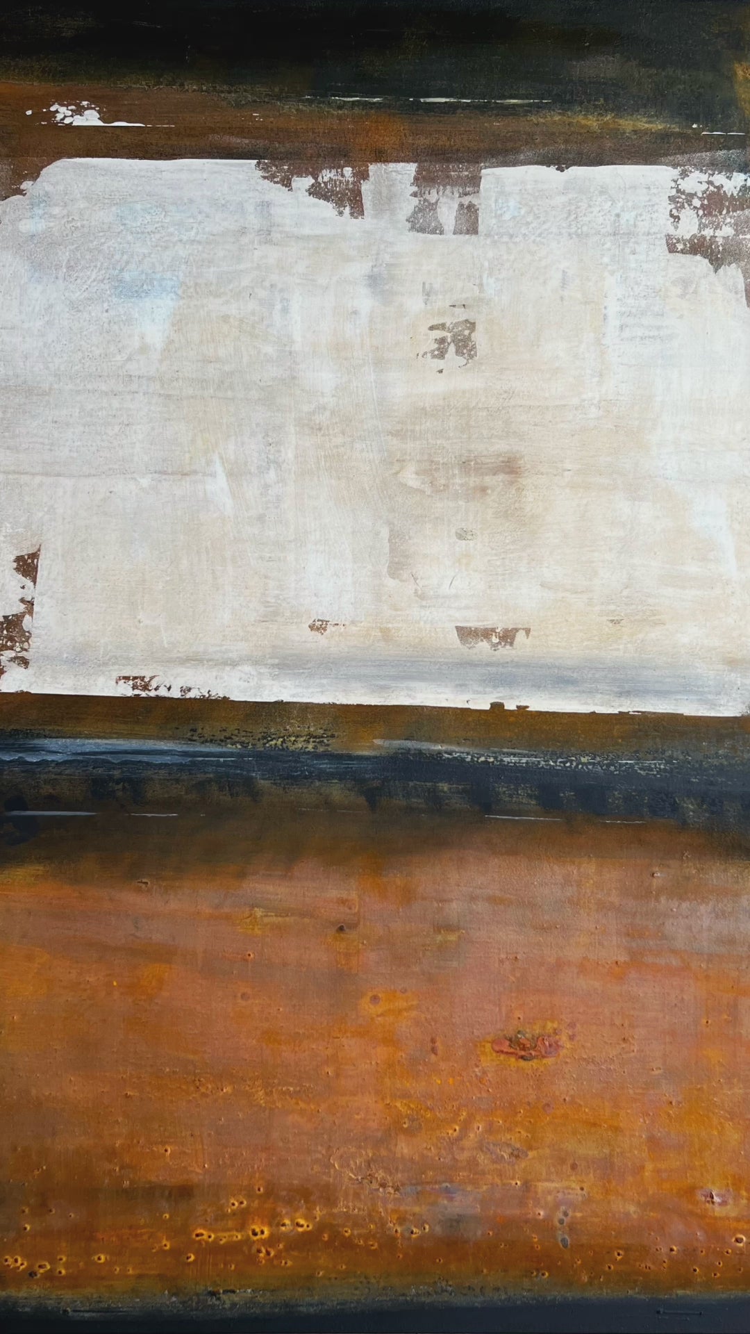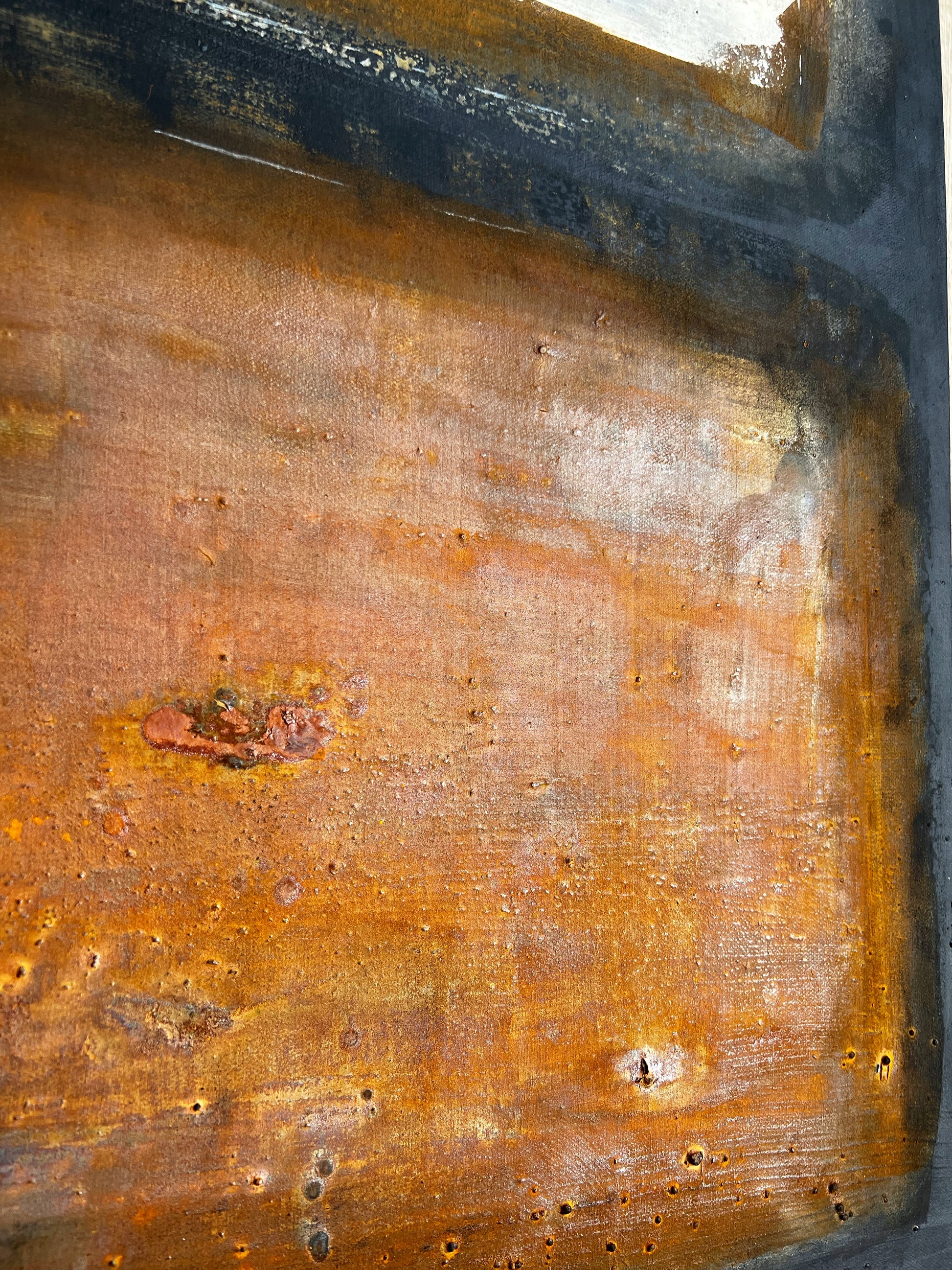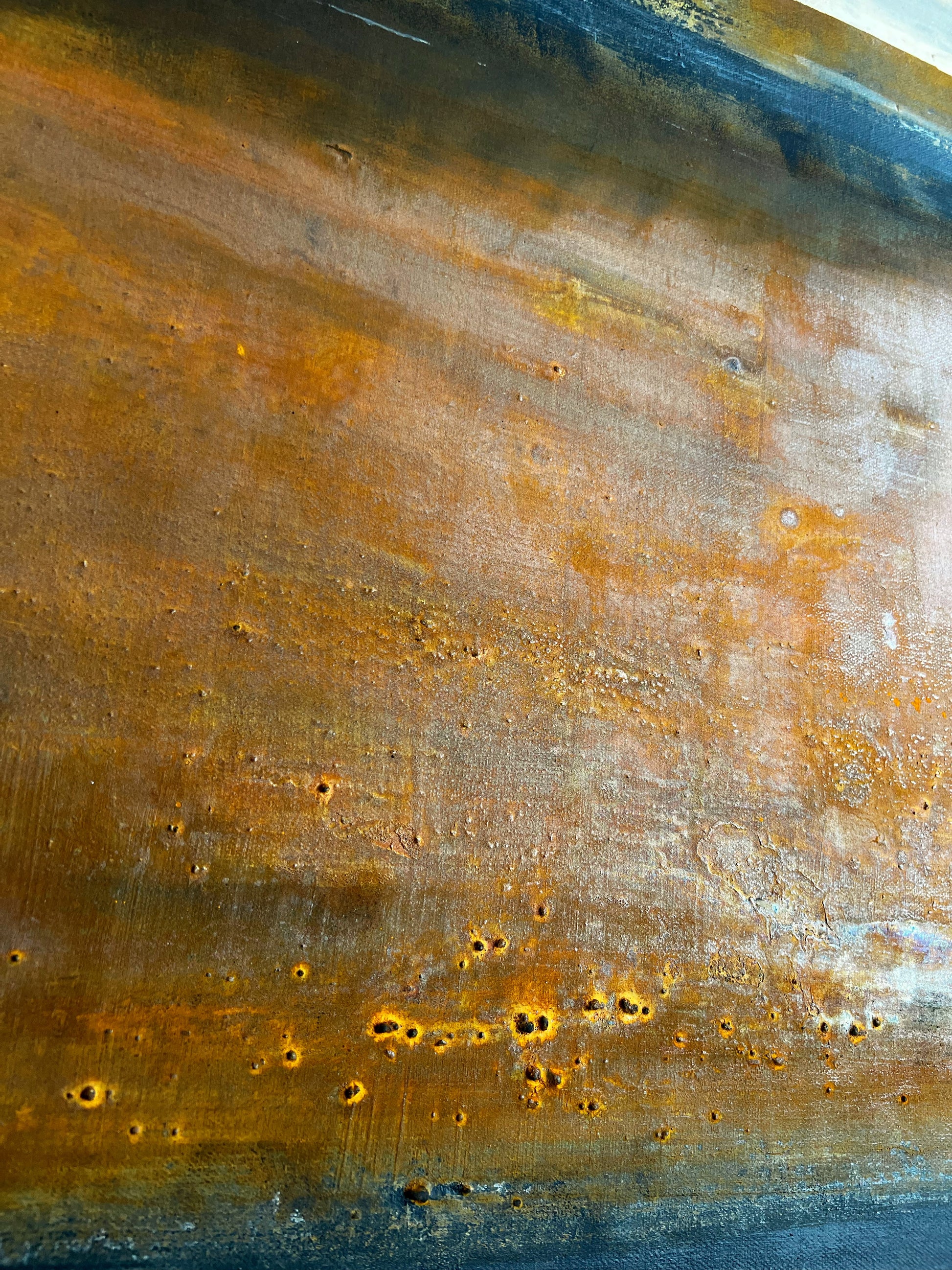 - Acrílico sobre lienzo, técnica mixta, textura, óxido, belleza en decadencia.