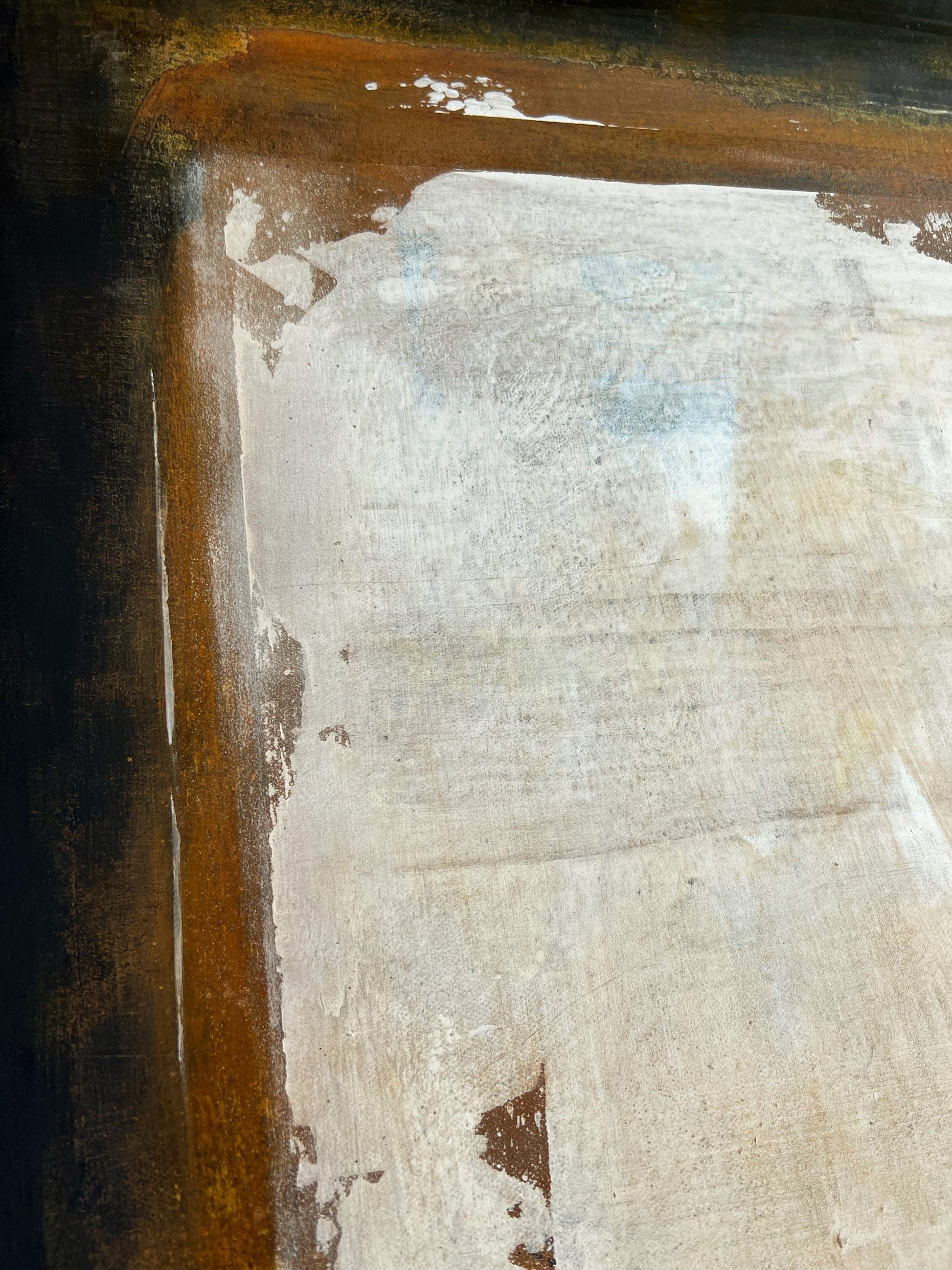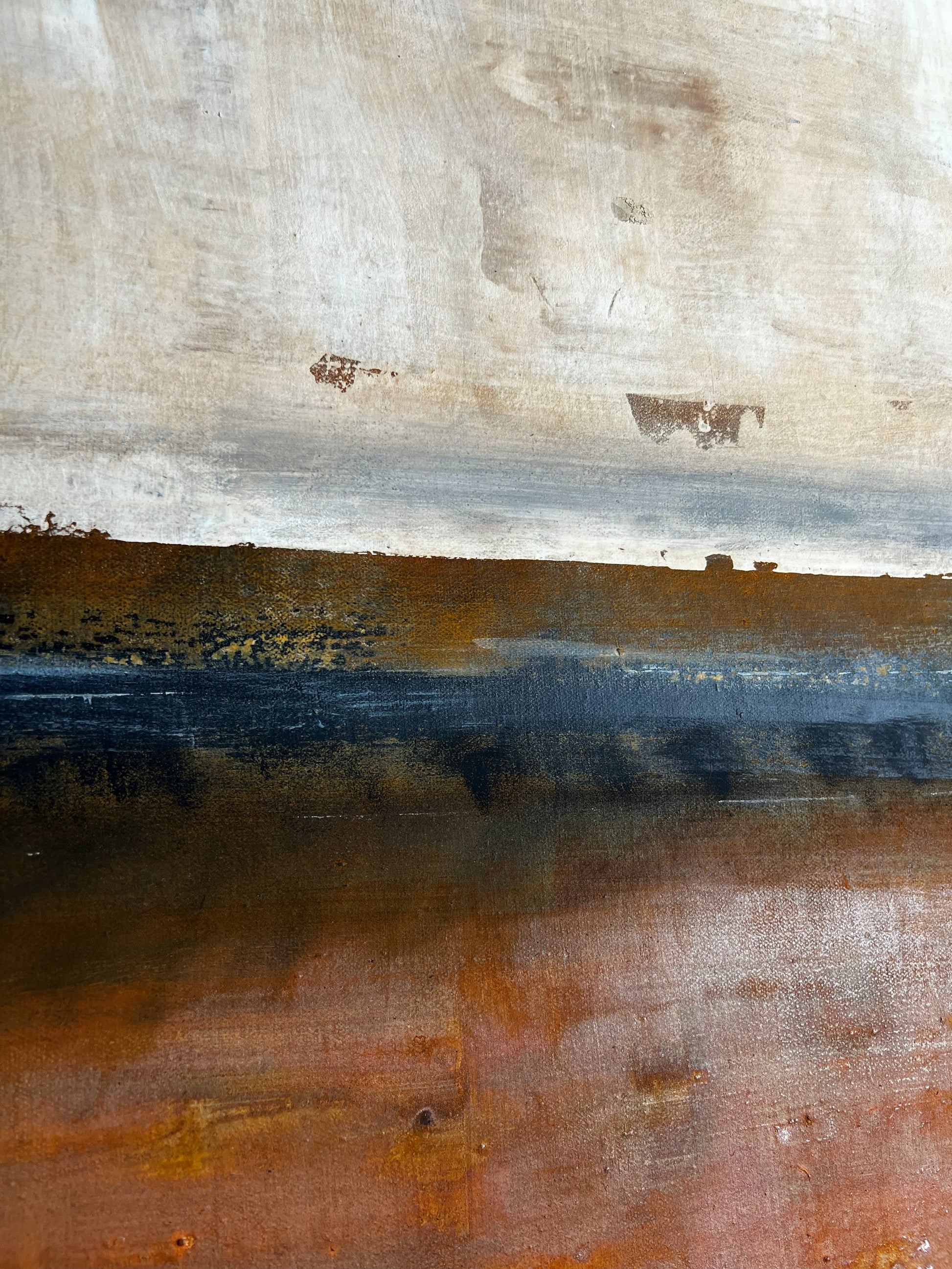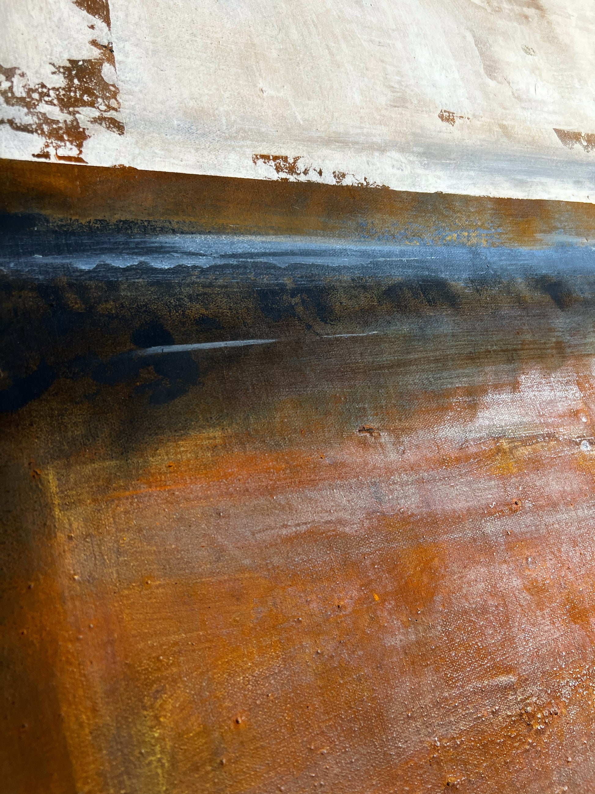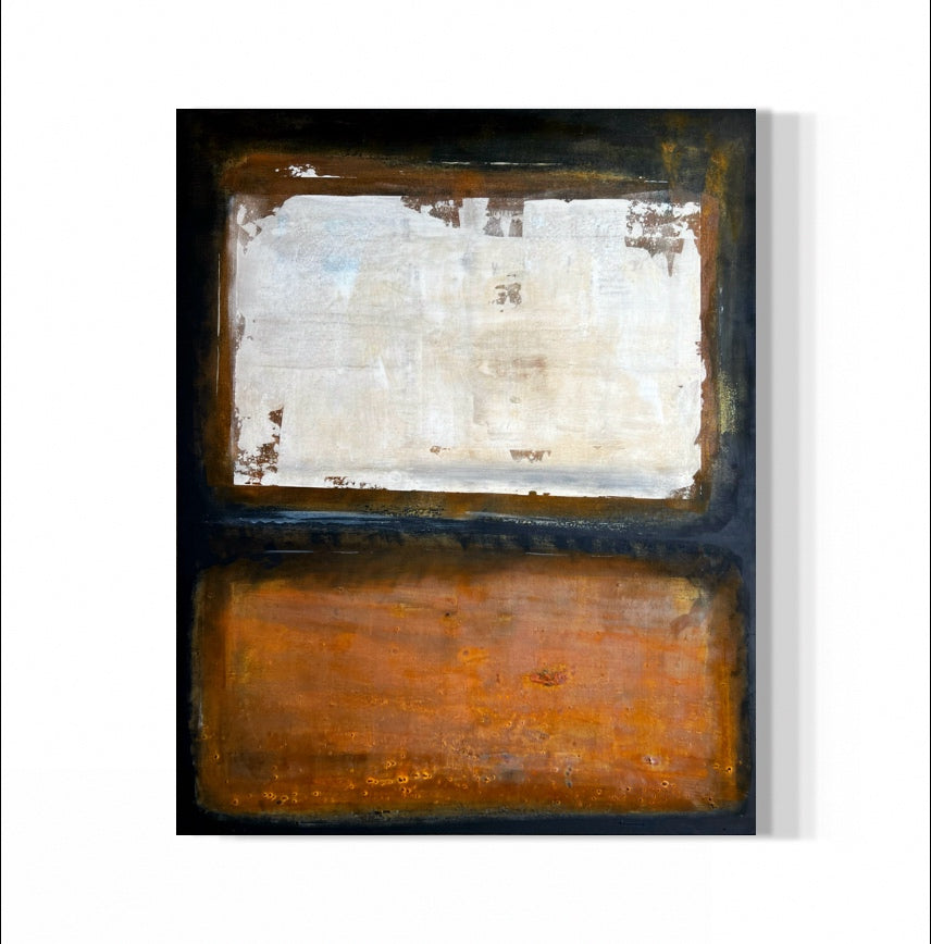 - Acrílico sobre lienzo, técnica mixta, textura, óxido, belleza en decadencia.