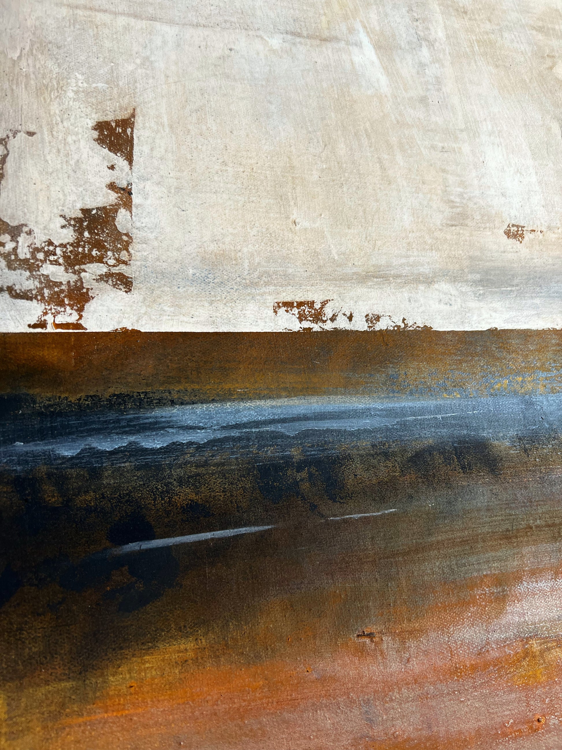 Mi trabajo explora la esencia del arte contemporáneo a través de piezas minimalistas creadas sobre lienzo, pero con un aspecto orgánico único. Mis cautivadoras pinturas hipnotizan la vista con sus sutiles texturas. Al jugar con los efectos de la corrosión y utilizar tonos naturales terrosos, creo una verdadera inmersión en la armonía entre el arte y el mundo natural.