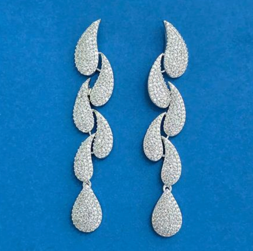 El Pendiente Clásico Rosalia está elaborado en latón de alta calidad y acabado con un refinado baño de rodio bicolor que aporta un toque moderno y pulido. Su silueta alargada y su ligereza lo hacen cómodo para llevar todo el día, mientras que los American Diamonds transparentes añaden un brillo radiante y sofisticación. Perfecto tanto para ocasiones especiales como para un estilo diario elegante.