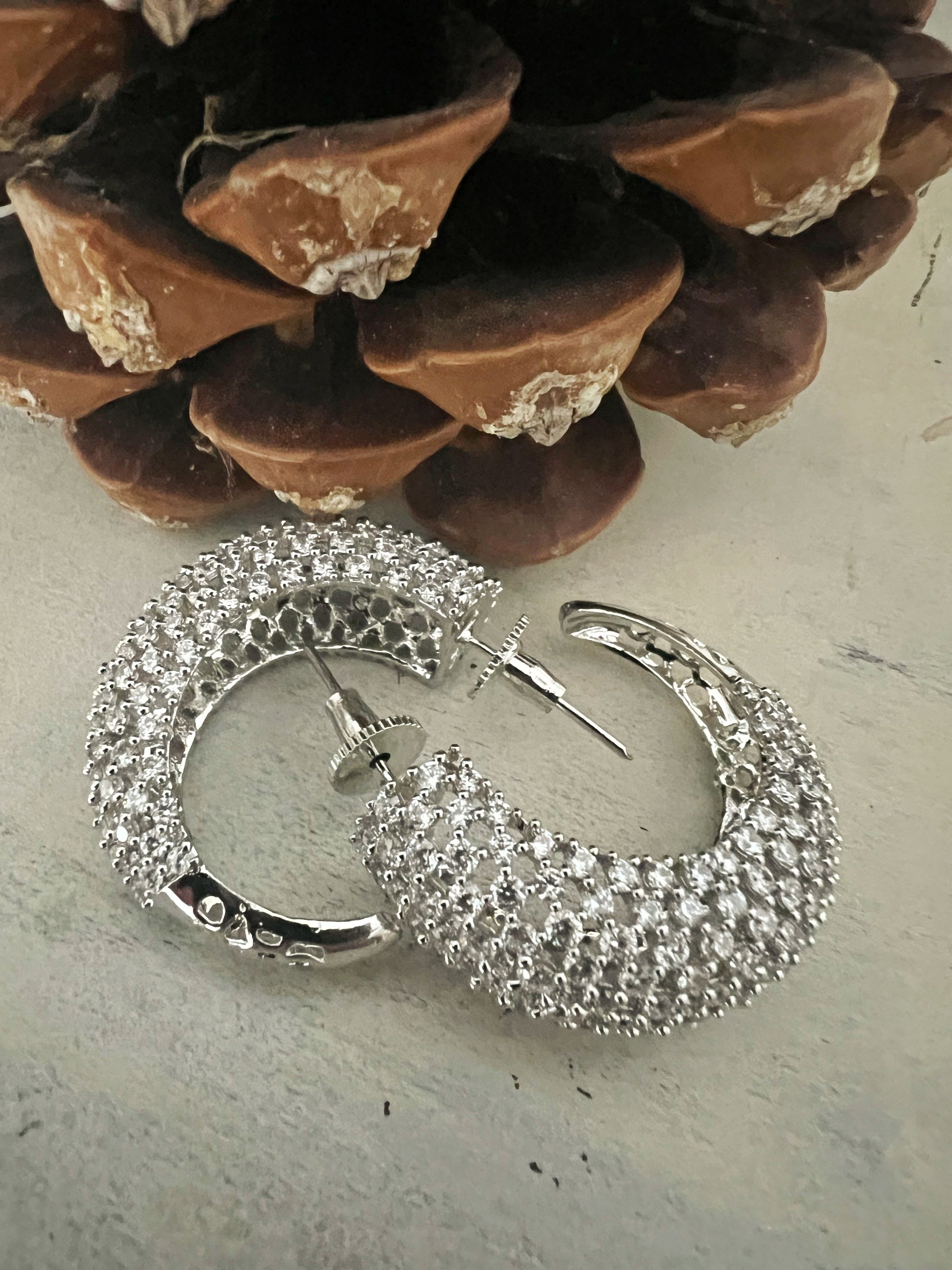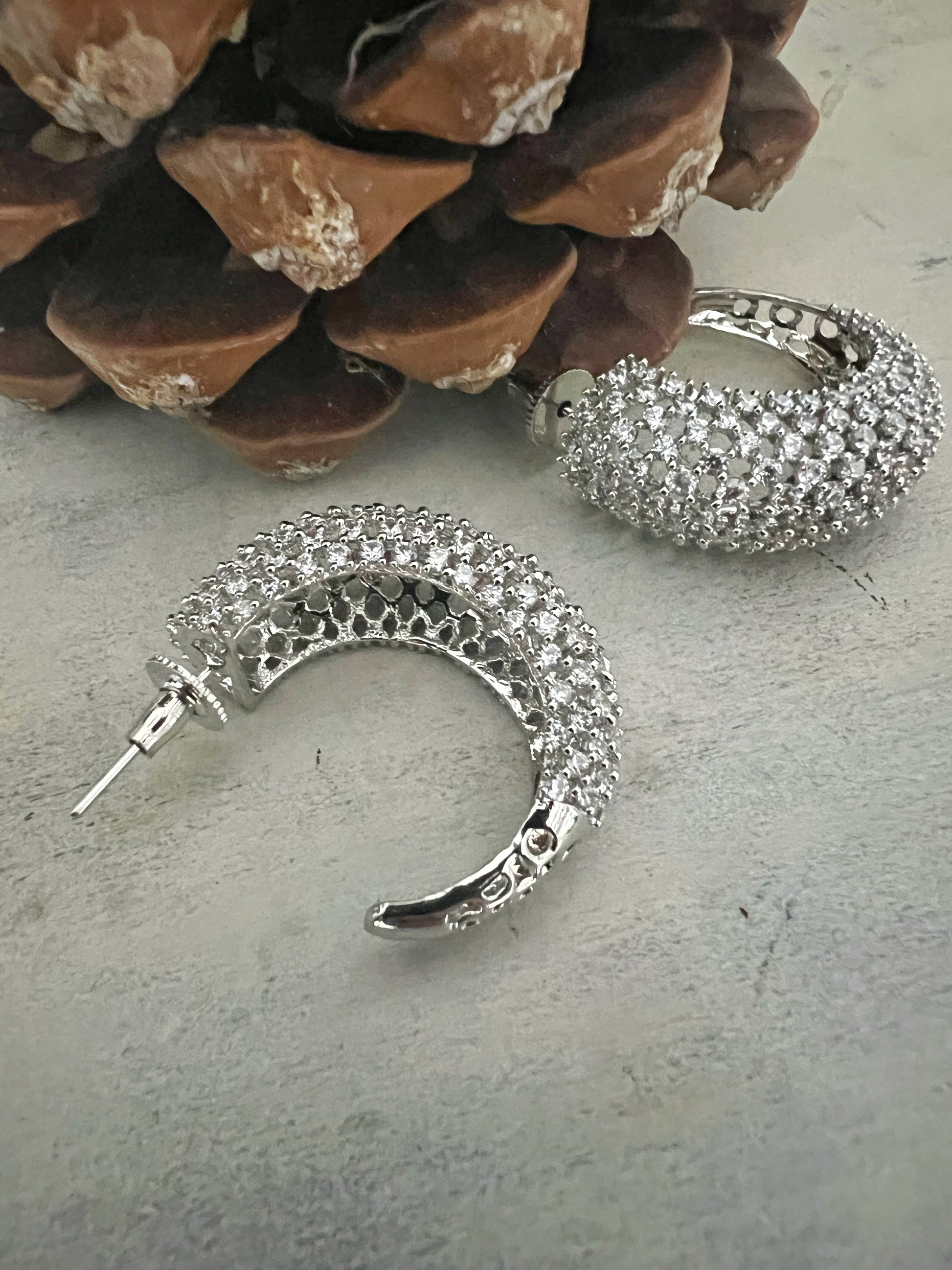 Refinados y atemporales, estos pendientes clásicos de circonitas están diseñados para aportar una elegancia natural a cualquier estilo. Acabados con un luminoso baño de oro blanco, ofrecen un brillo frío y sofisticado que realza tanto looks modernos como clásicos.