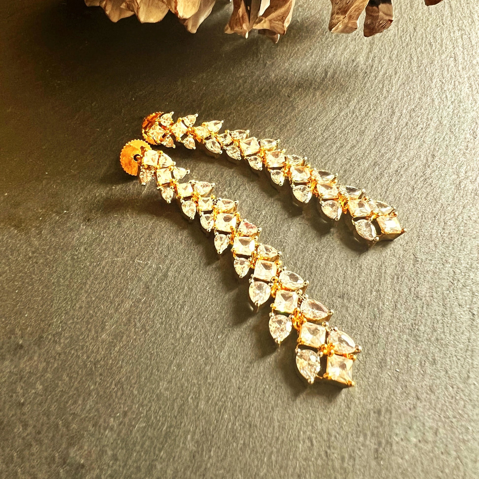 Crafted with an unwavering commitment to quality, these earrings are made from the purest brass and adorned with a refined yellow gold plating. Their design, inspired by the most exquisite high jewelry pieces, features an elongated and refined shape that adds a touch of sophistication and versatility—perfect for any type of celebration or meaningful event.