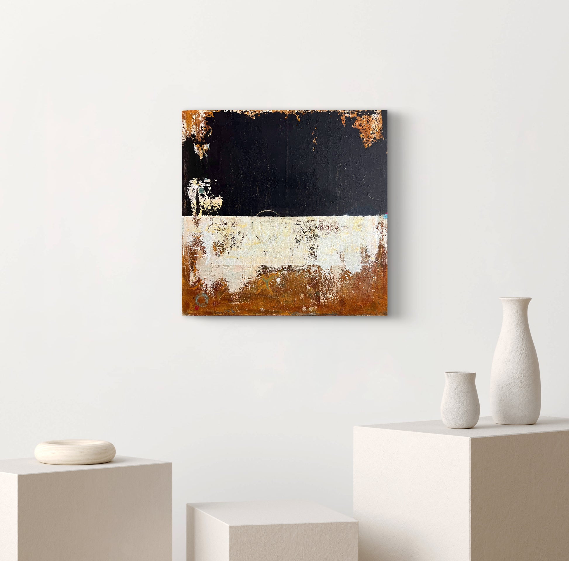 Mon travail explore l’essence de l’art contemporain, exprimée à travers des toiles minimalistes enrichies de qualités organiques et tactiles. Chaque pièce invite à un voyage vers l’harmonie naturelle, où les tons terreux et les effets de corrosion subtils évoquent une connexion sereine mais puissante avec le monde naturel.
