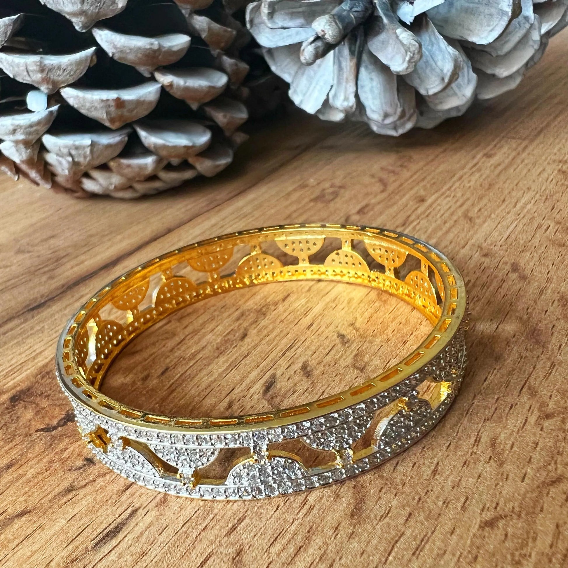 We present our exquisite bracelet, a true embodiment of elegance and sophistication. Crafted from high-quality brass and beautifully plated in yellow gold, this round bracelet is a stunning piece that will elevate any outfit. Adorned with dazzling diamond-like zirconia, each stone is meticulously set in the metal, ensuring a secure and luxurious finish.