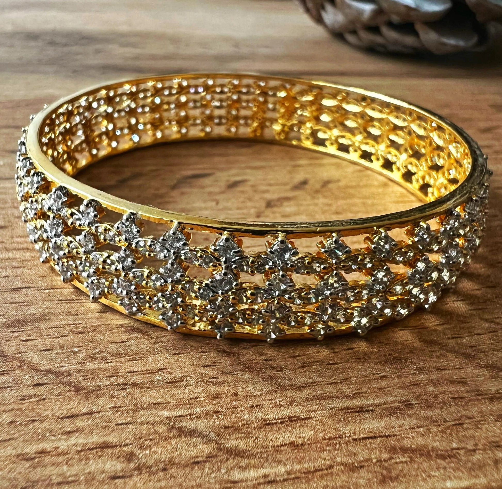 Exquisite bracelet, a true embodiment of elegance and sophistication. Crafted from high-quality brass and beautifully plated in yellow gold, this round bracelet is a stunning piece that will elevate any outfit. Adorned with dazzling diamond-like zirconia stones, each stone is meticulously set into the metal, ensuring a secure and luxurious finish.