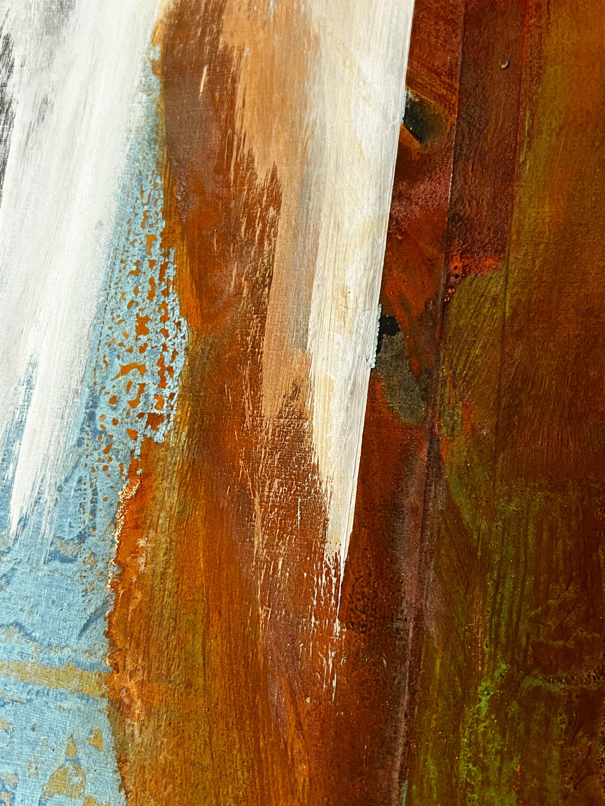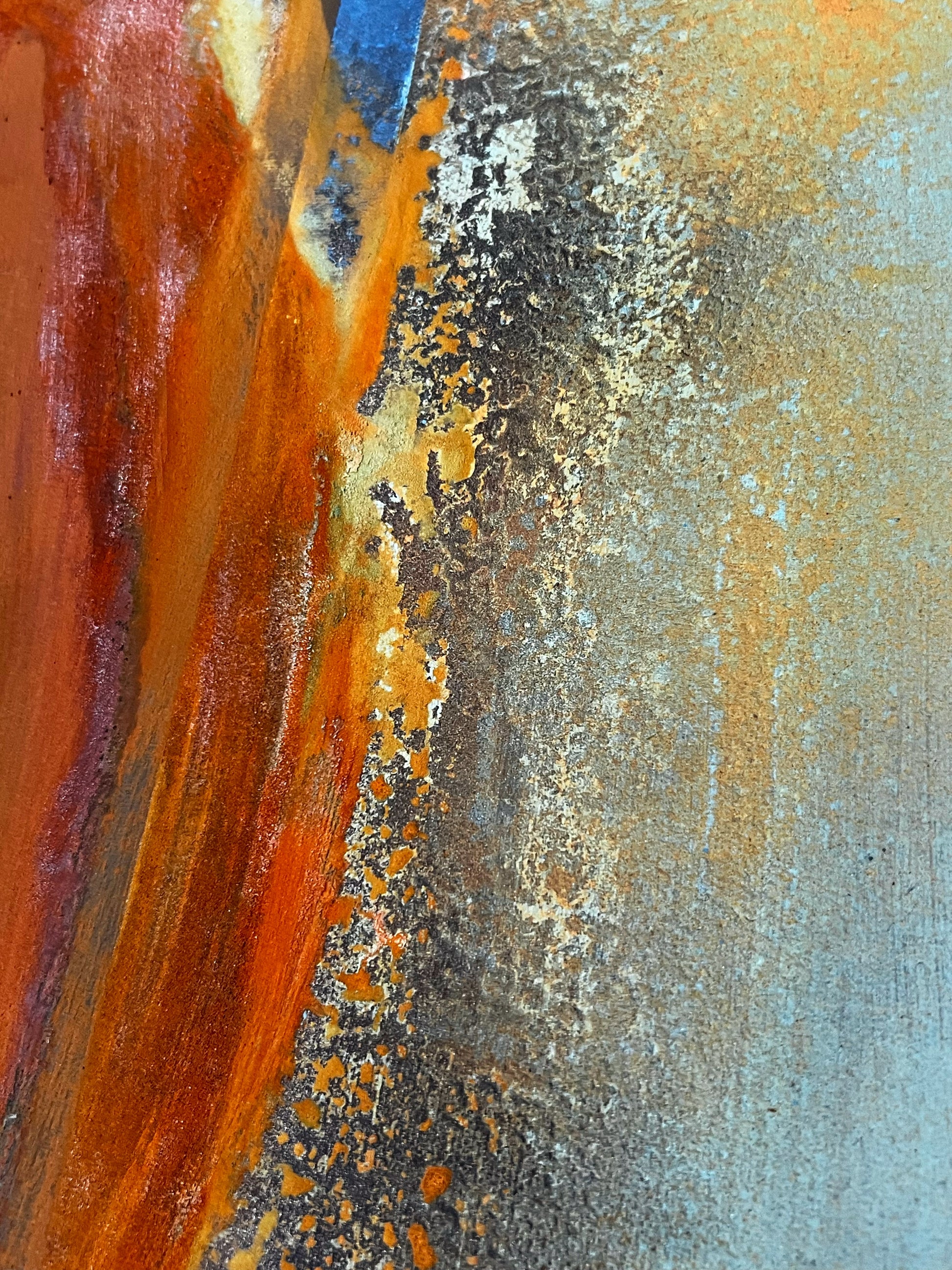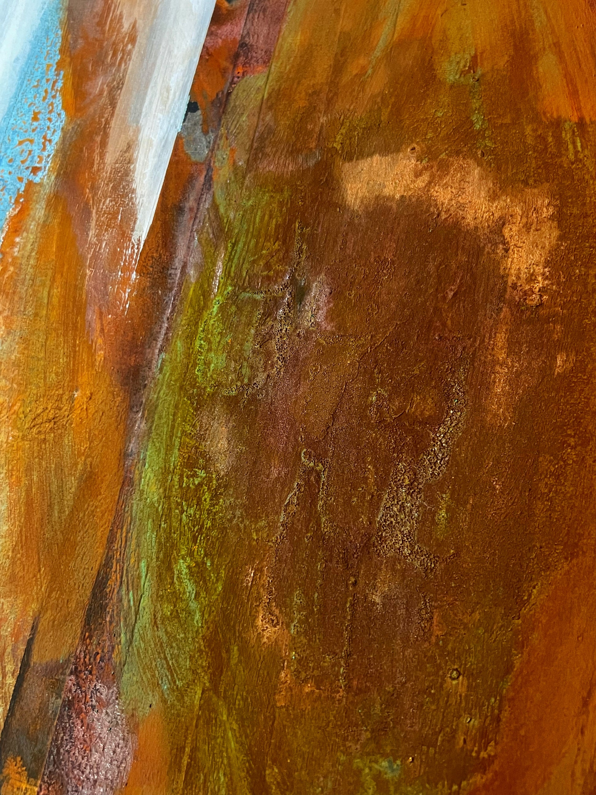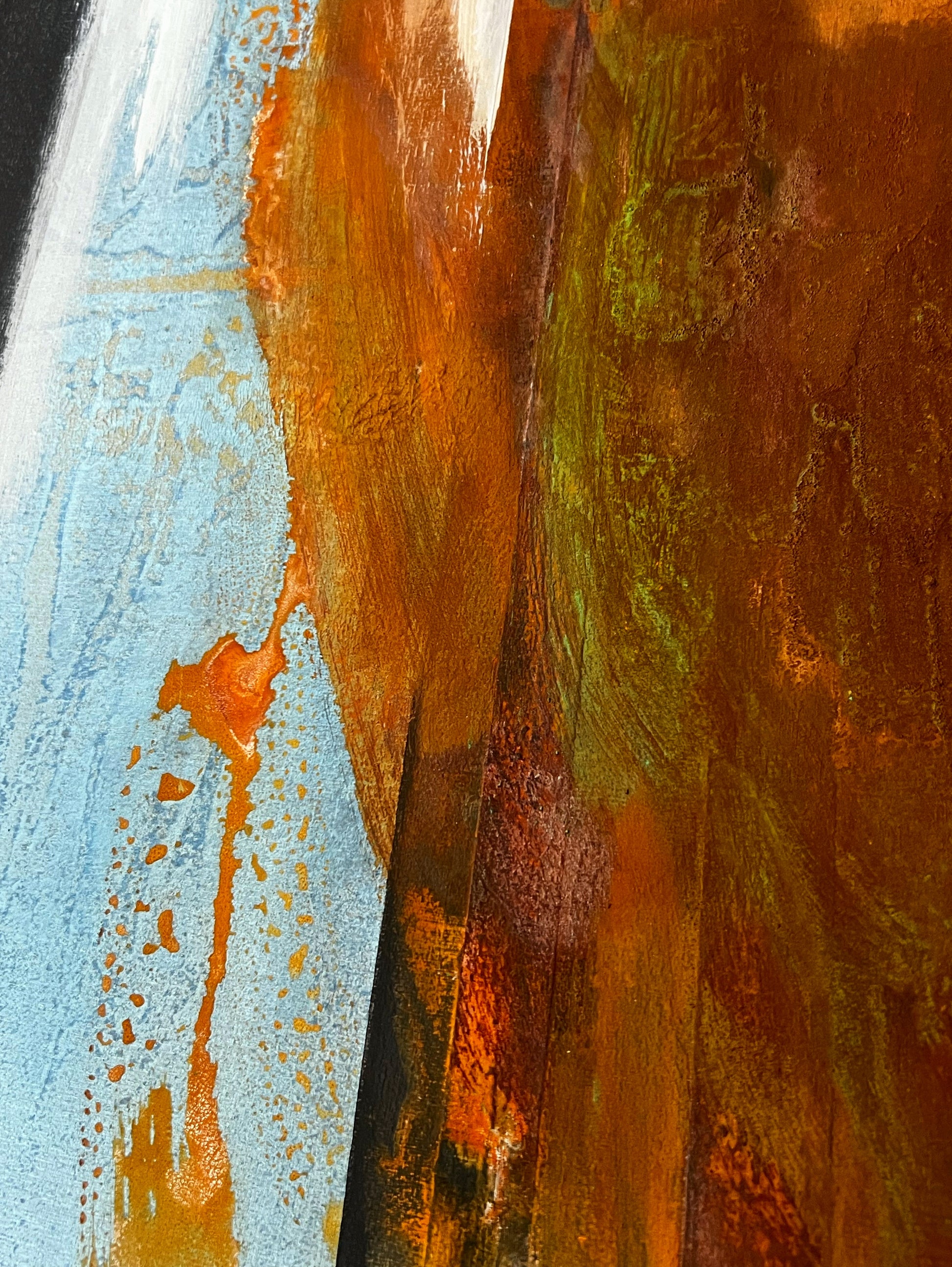 Ces œuvres d'art uniques combinent des techniques de médias mixtes, avec des textures créées à l'aide de gesso, de copeaux de bois, de peinture acrylique et de pigments. Elles arriveront prêtes à être accrochées à votre mur. Un certificat d'authenticité est inclus avec chaque pièce. Mes peintures sont emballées en toute sécurité, assurées et expédiées par un service de messagerie fiable pour garantir qu'elles vous parviennent en toute sécurité. Je suis ravi de partager ma passion pour l'art avec vous et j'espère que mes créations vous inspireront autant qu'elles m'ont inspiré.