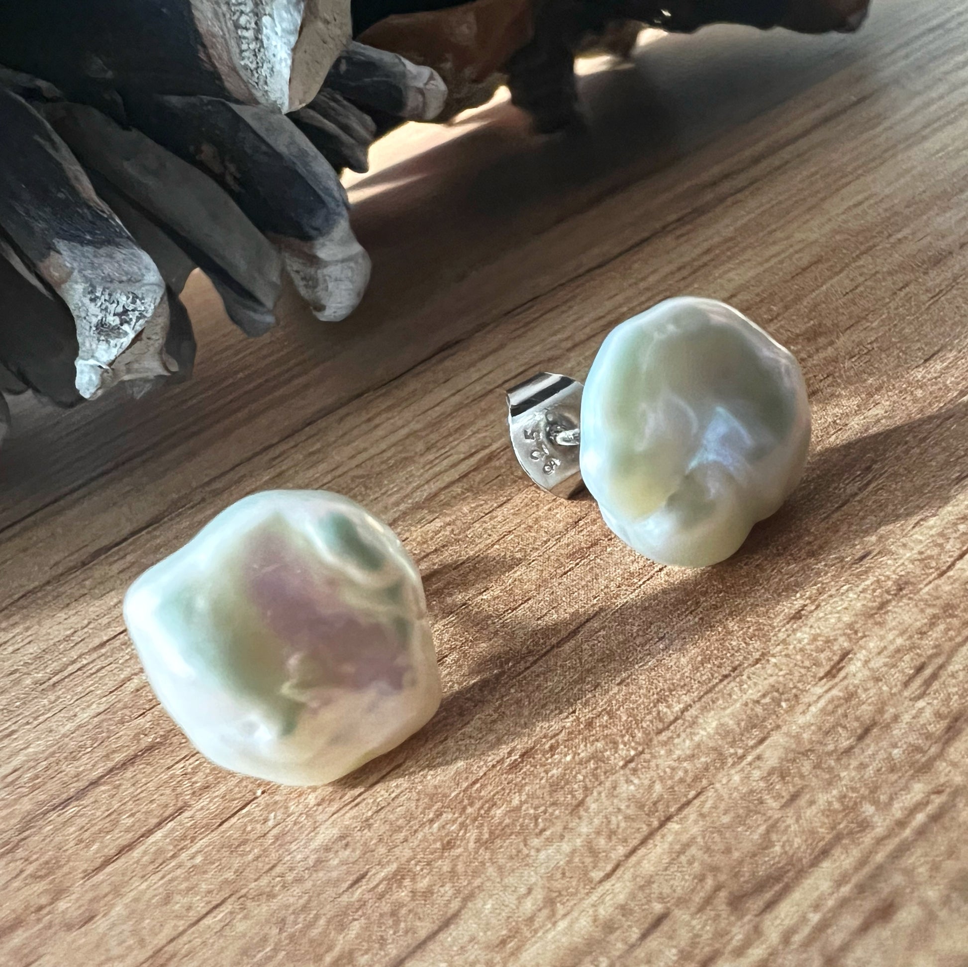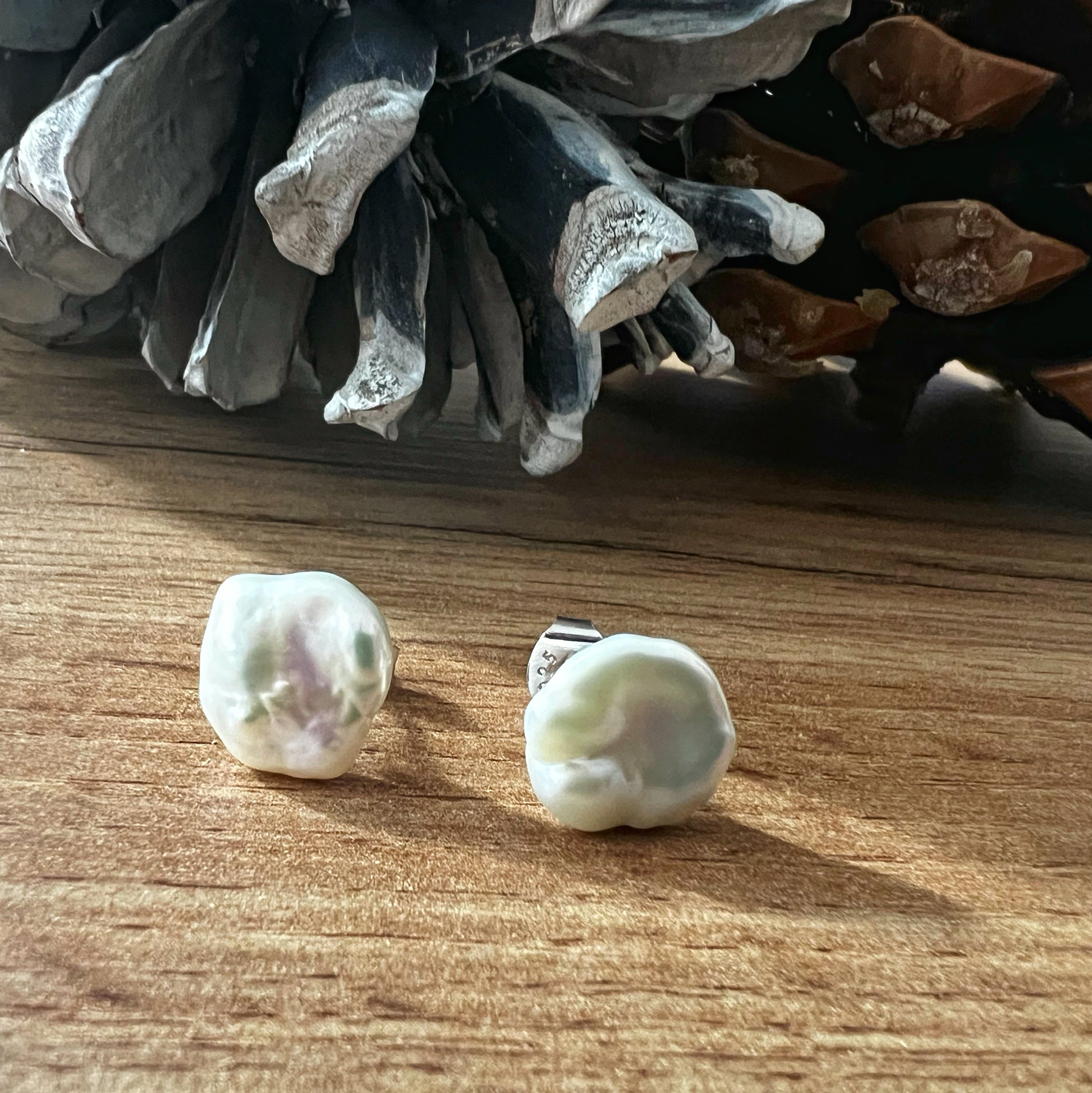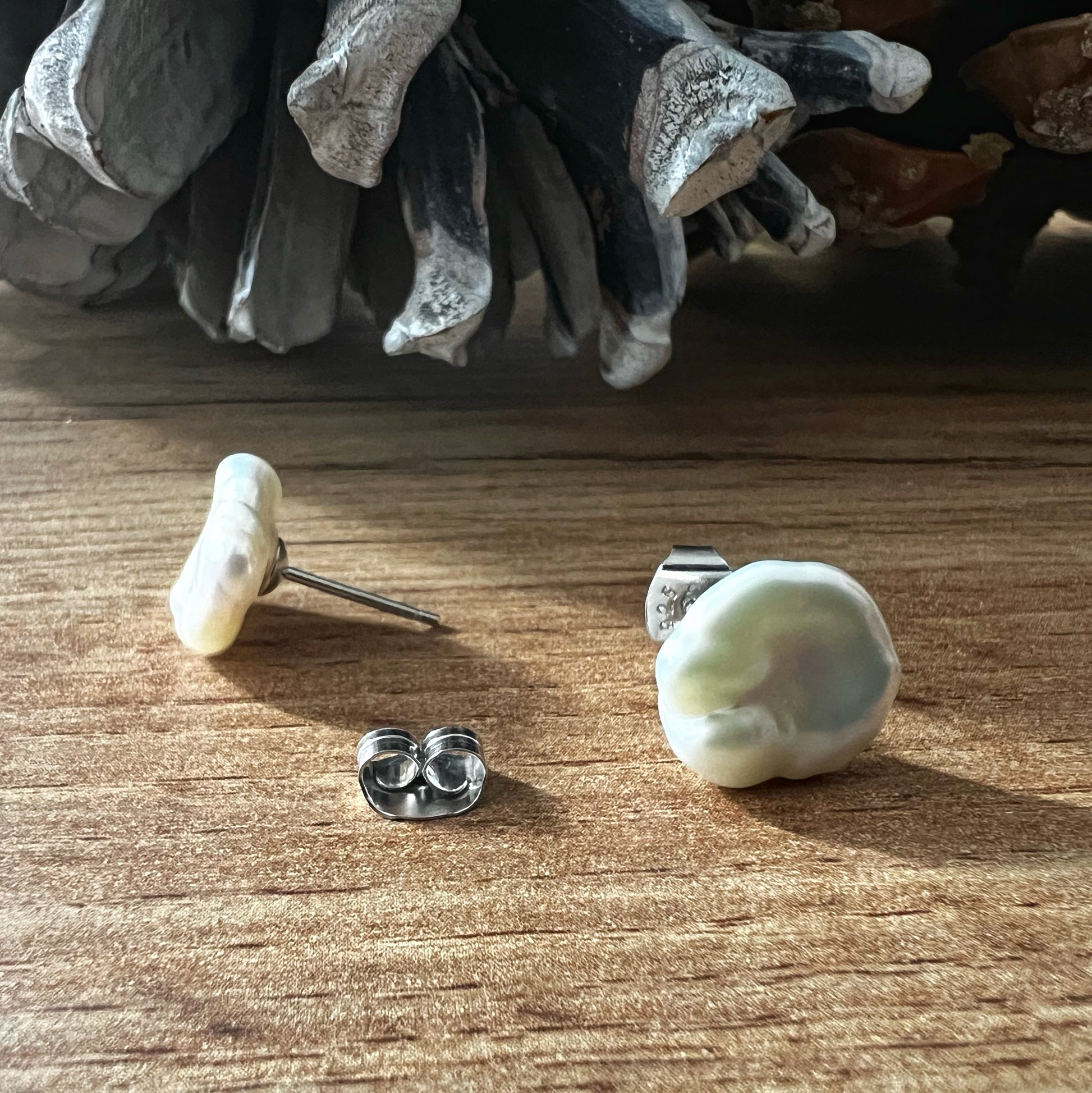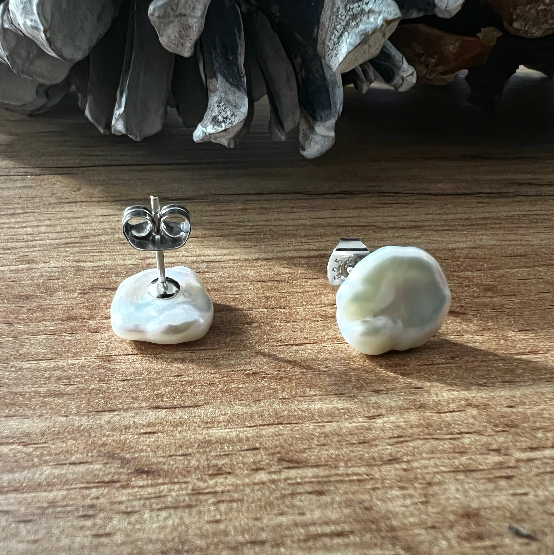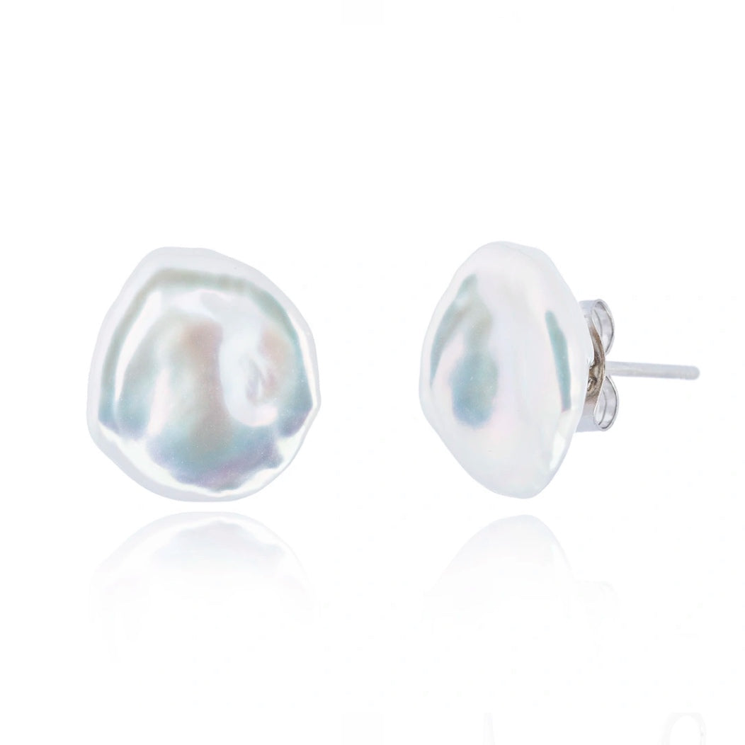 These sterling silver stud earrings showcase a delicate elegance, featuring lustrous 12 mm flat Keshi white pearls that captivate with their natural, organic shape. Each pearl is surrounded by a sparkling halo of dainty diamonds, adding a refined brilliance that highlights the pearl’s unique luster. The sterling silver setting provides a timeless frame, enhancing both the shimmer of the diamonds and the gentle iridescence of the pearls. Perfect for elevating everyday looks or adding sophistication to special occasions, these earrings are a versatile piece that brings a touch of classic beauty to any jewelry collection.