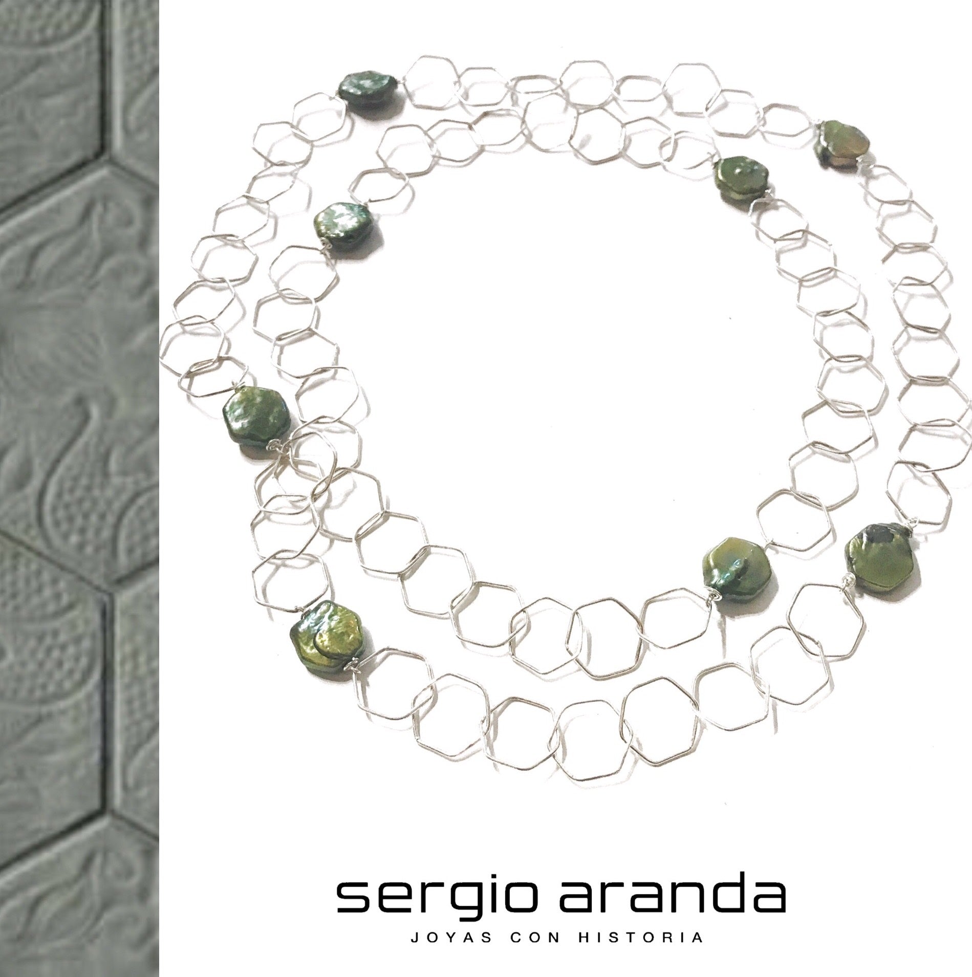 Long Silver Necklace with Coin Pearls – Inspired by Gaudí’s Passeig de Gràcia Tile