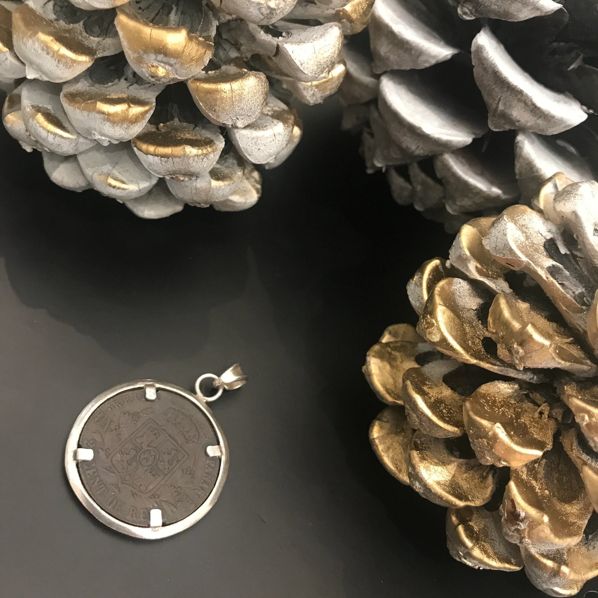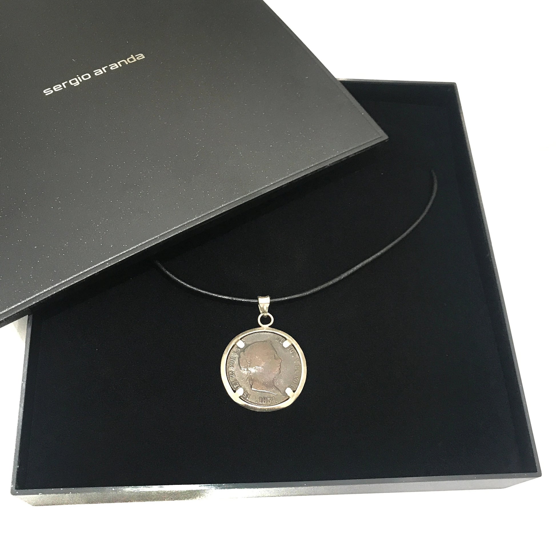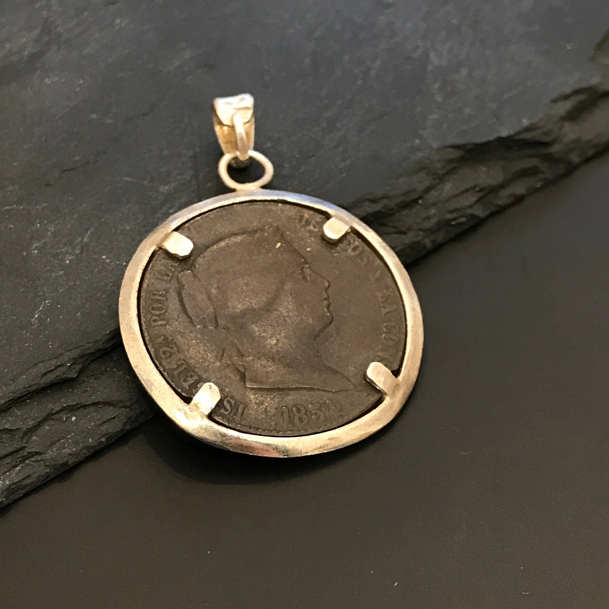 Pendant with a genuine 1854 Spanish coin and 925 sterling silver.