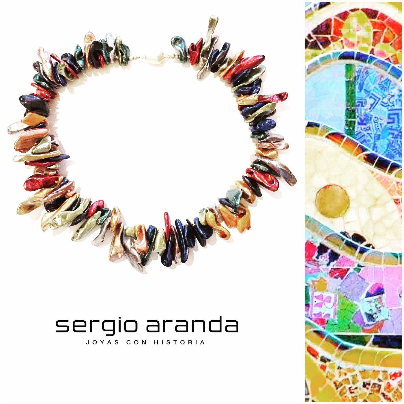 Vibrant and full of character, this 46 cm choker features a mosaic of natural shells in a variety of colors, reminiscent of the intertwined patterns of the “Trencadis” tile. Each shell reflects light beautifully, creating a lively play of tones that evokes Mediterranean warmth and artistic flair.