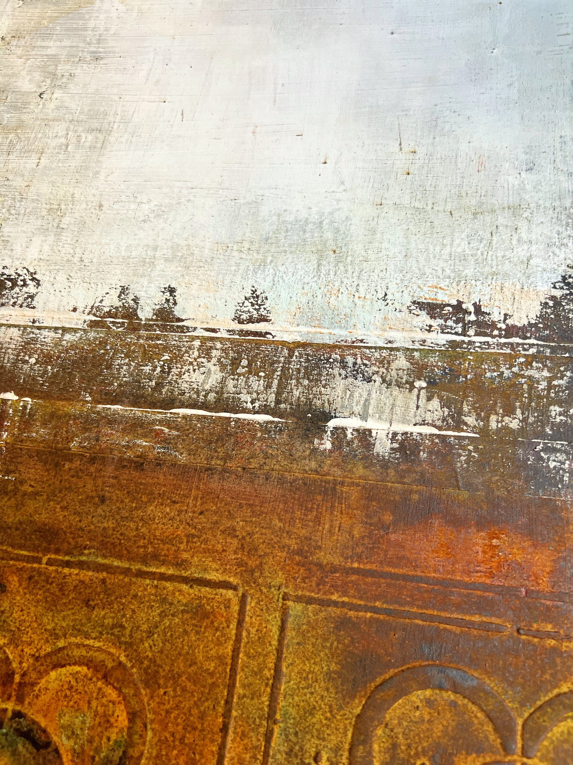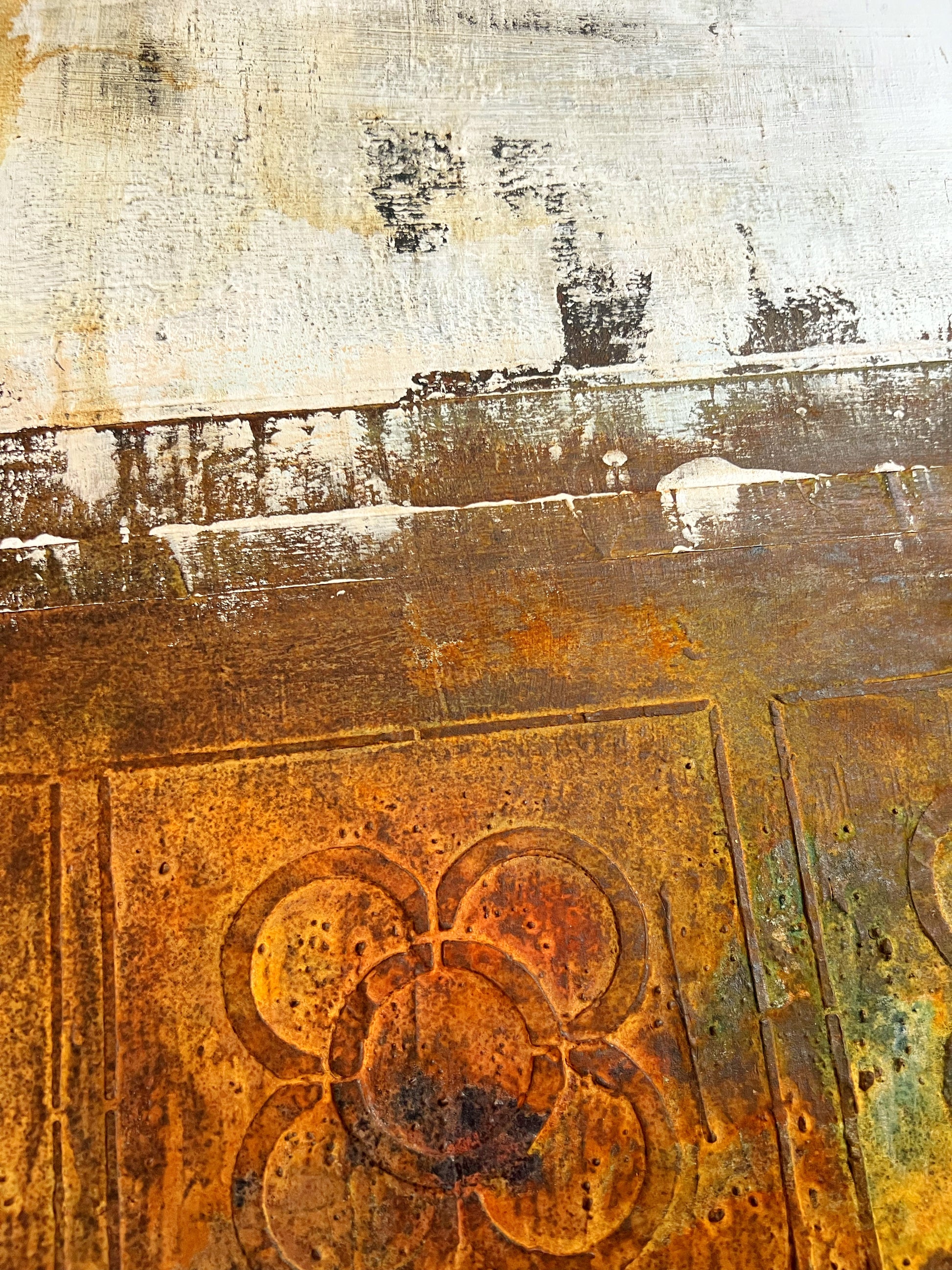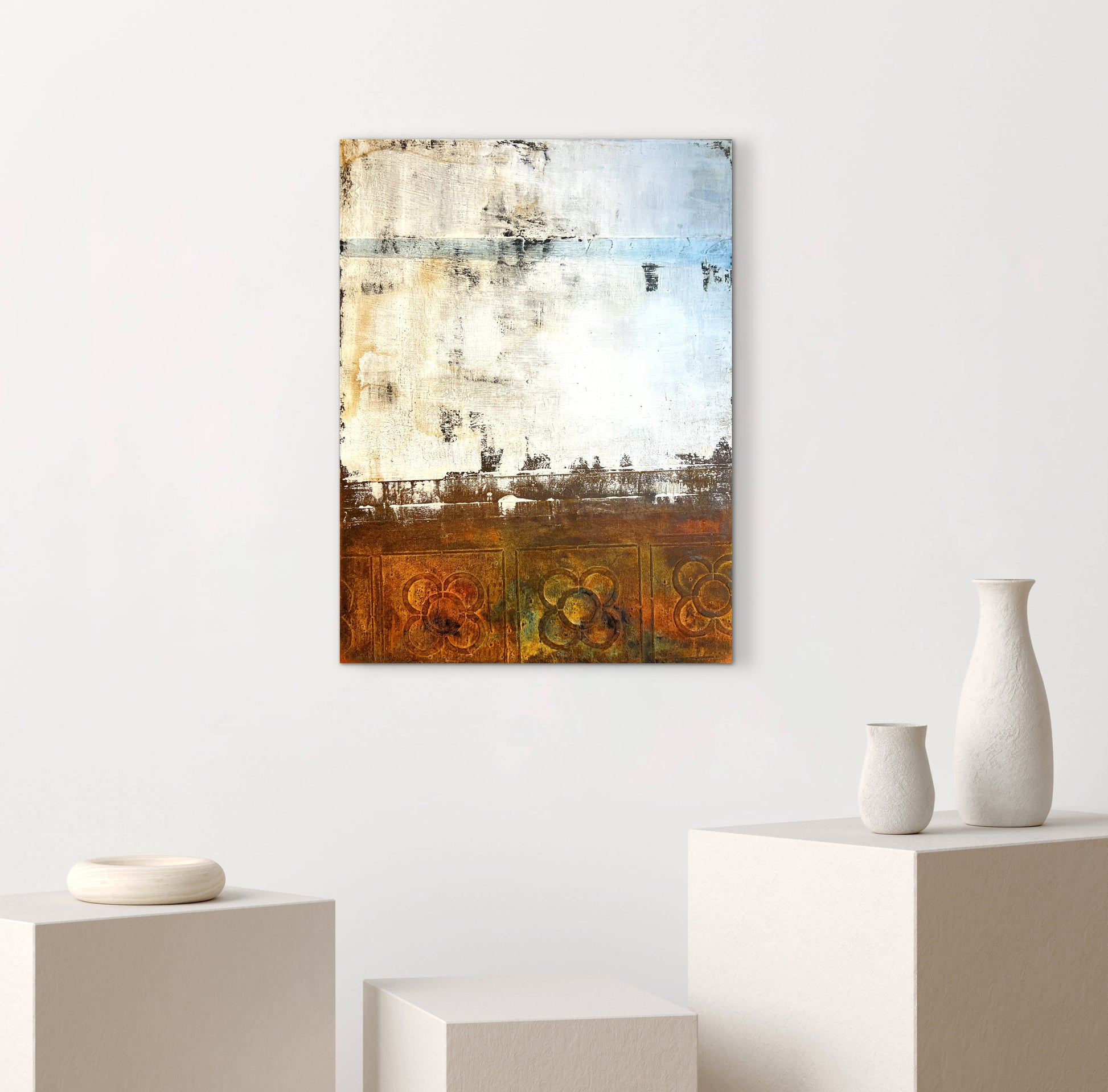 My work delves into the essence of contemporary art, expressed through minimalist canvases enriched with organic, tactile qualities. Each piece invites a journey into natural harmony, where earthy tones and subtle corrosion effects evoke a serene yet powerful connection to the natural world.