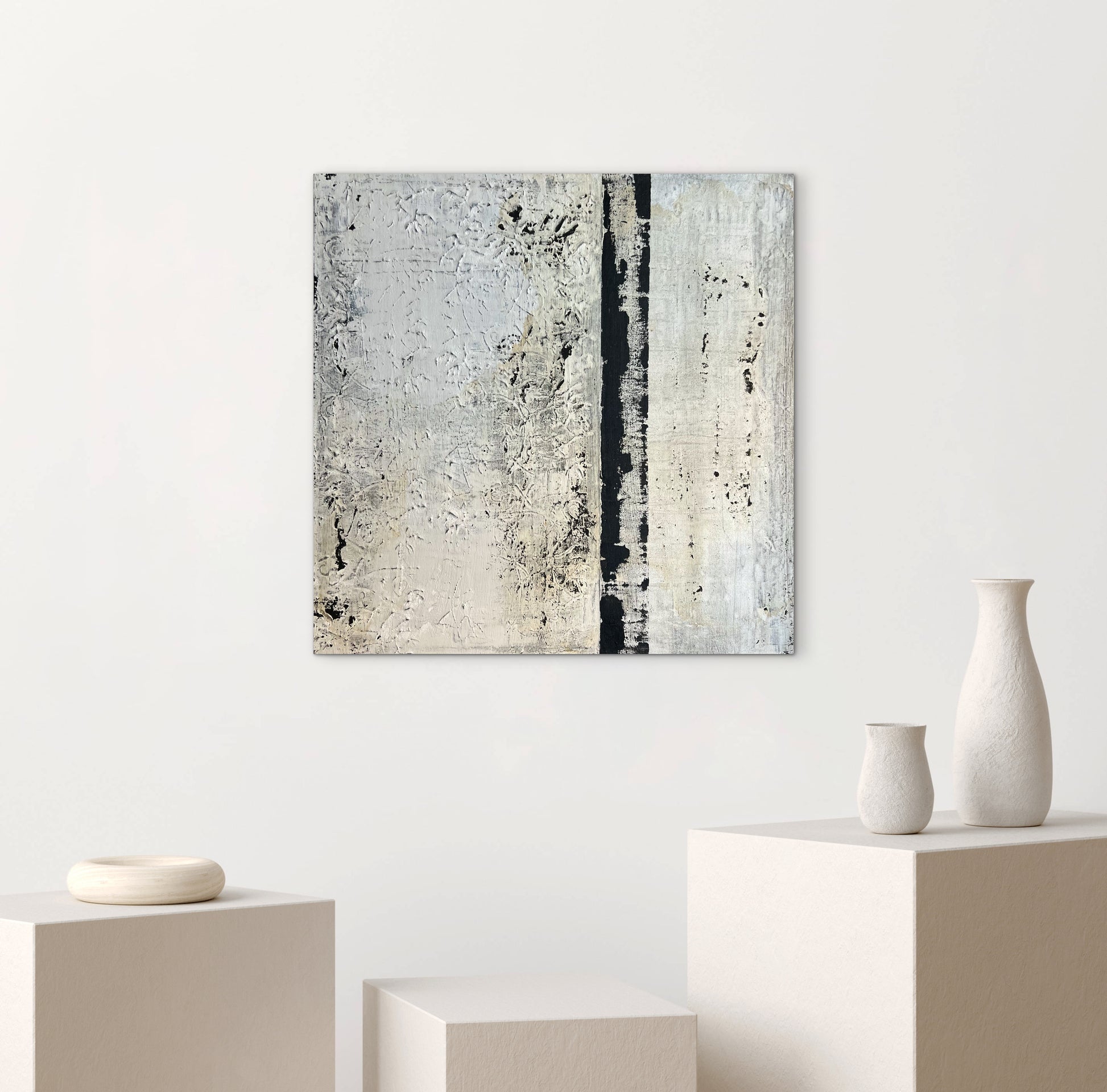 My work delves into the essence of contemporary art, expressed through minimalist canvases enriched with organic, tactile qualities. Each piece invites a journey into natural harmony, where earthy tones and subtle corrosion effects evoke a serene yet powerful connection to the natural world.