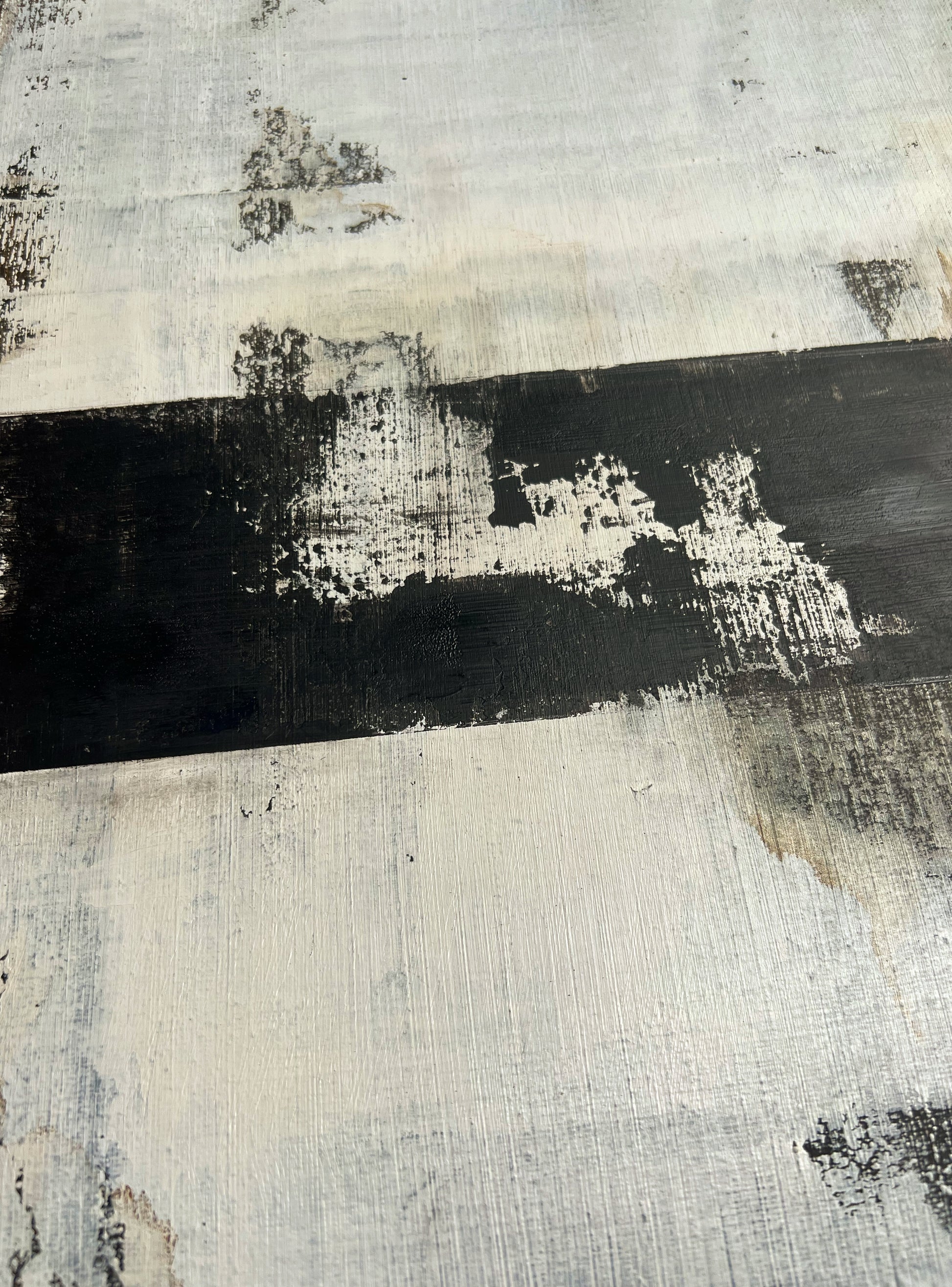 My work delves into the essence of contemporary art, expressed through minimalist canvases enriched with organic, tactile qualities. Each piece invites a journey into natural harmony, where earthy tones and subtle corrosion effects evoke a serene yet powerful connection to the natural world.