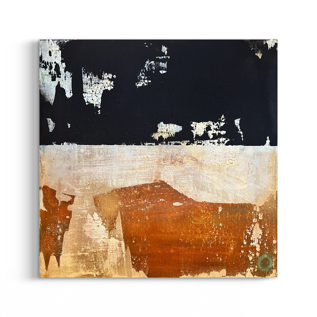 My work delves into the essence of contemporary art, expressed through minimalist canvases enriched with organic, tactile qualities. Each piece invites a journey into natural harmony, where earthy tones and subtle corrosion effects evoke a serene yet powerful connection to the natural world.