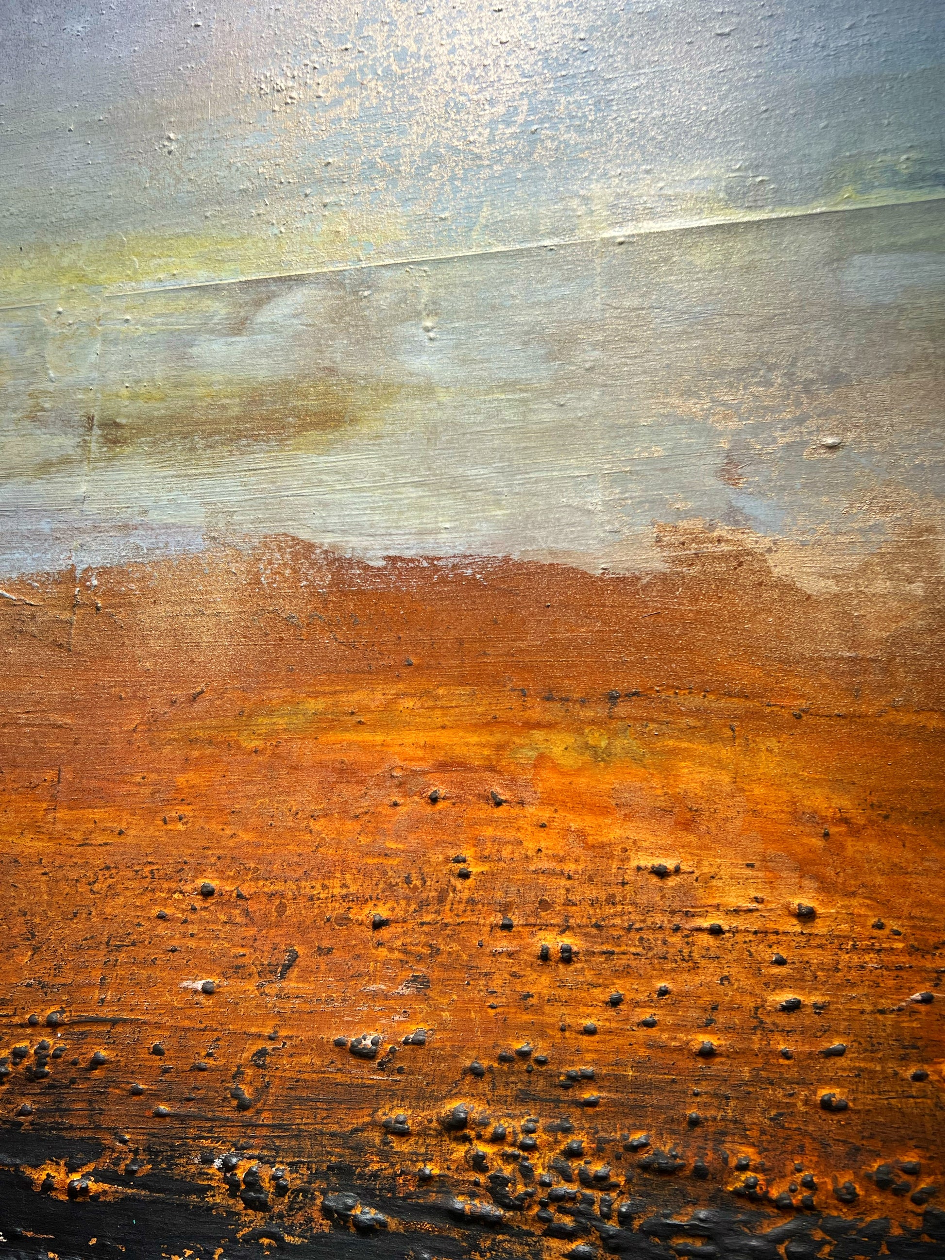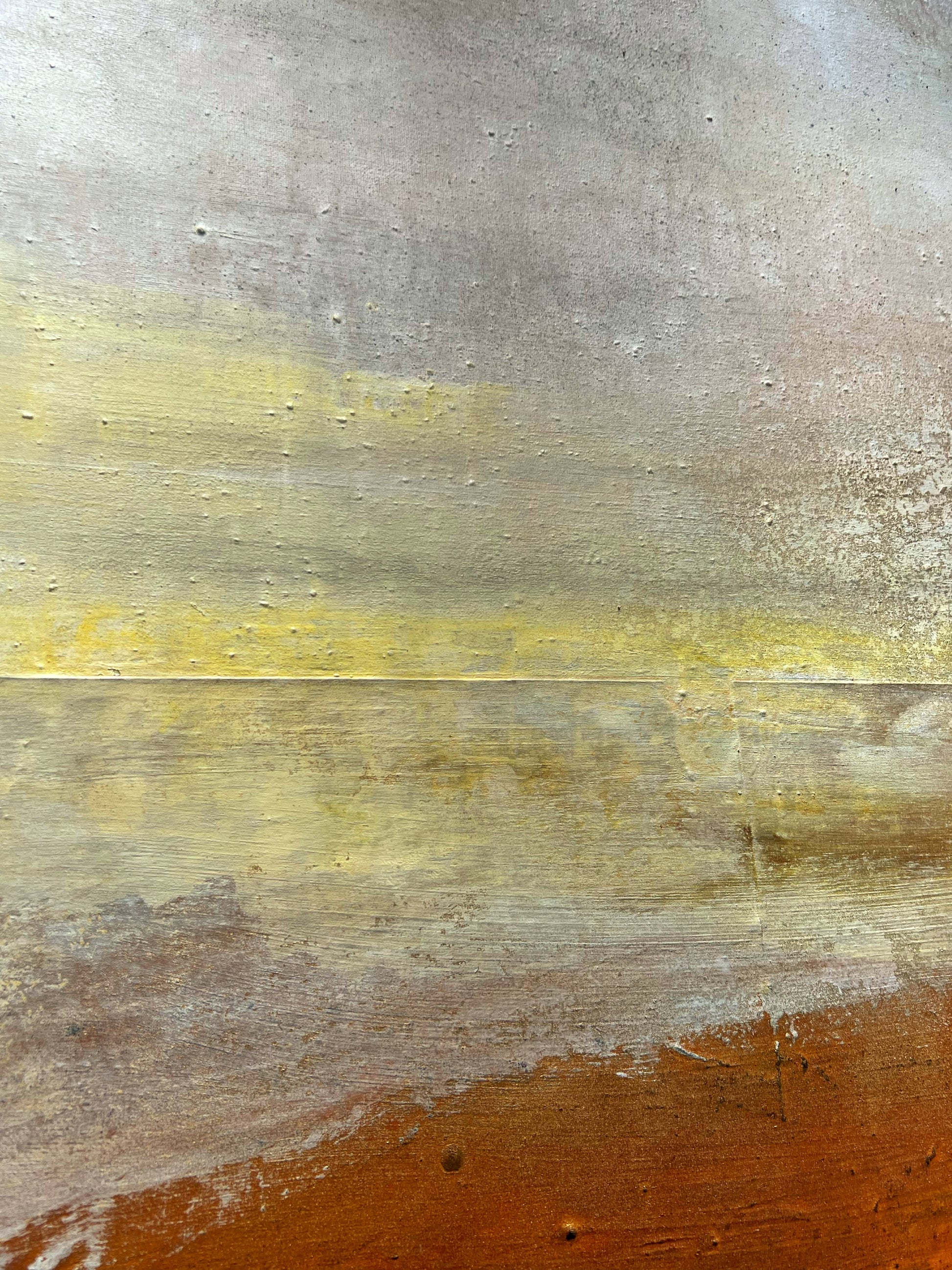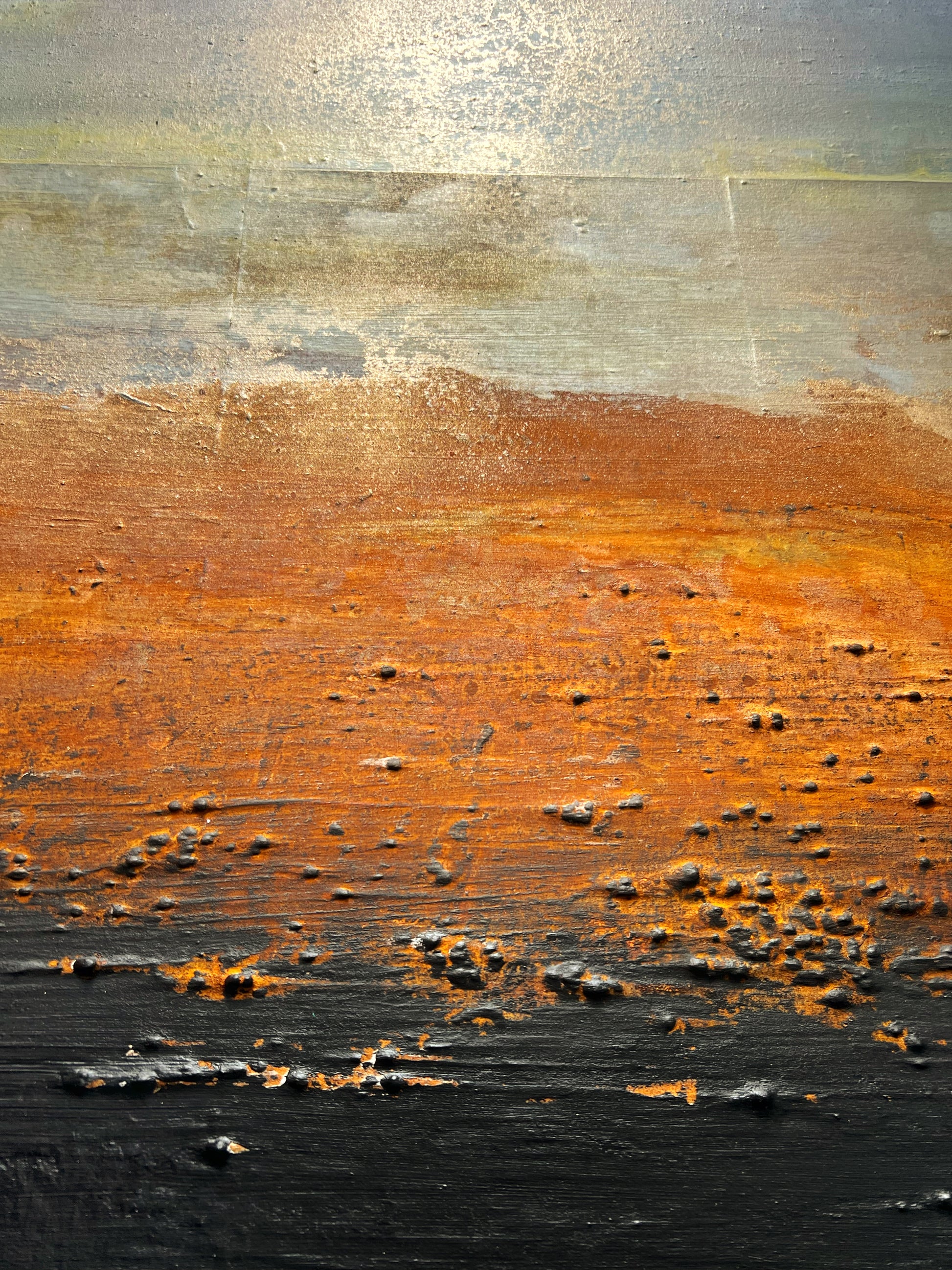 My work delves into the essence of contemporary art, expressed through minimalist canvases enriched with organic, tactile qualities. Each piece invites a journey into natural harmony, where earthy tones and subtle corrosion effects evoke a serene yet powerful connection to the natural world.