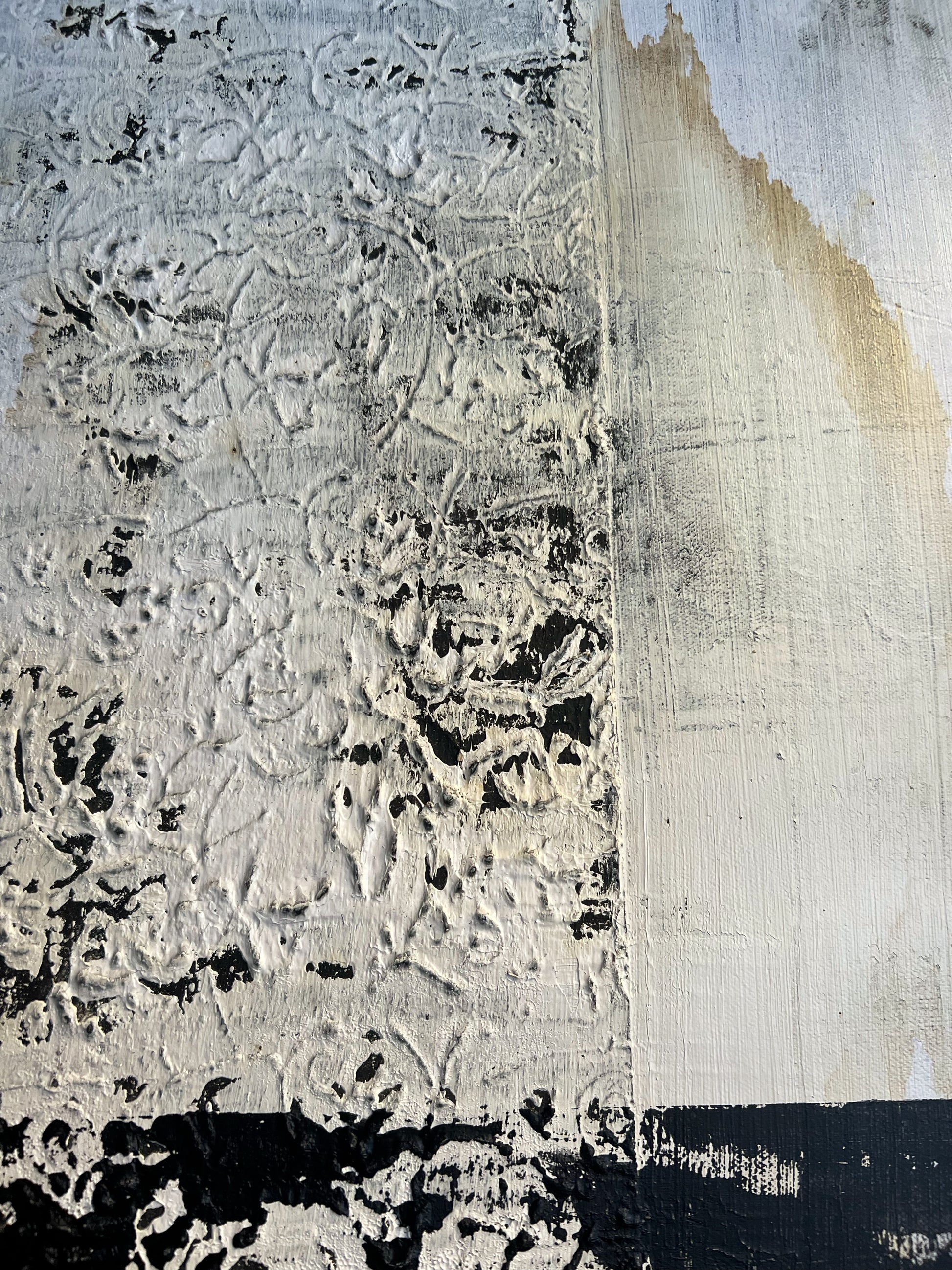 These one-of-a-kind artworks combine mixed media techniques, with textures crafted from gesso, sawdust, acrylics, and hand-blended pigments, resulting in layered surfaces that reveal the beauty of imperfection and transformation.