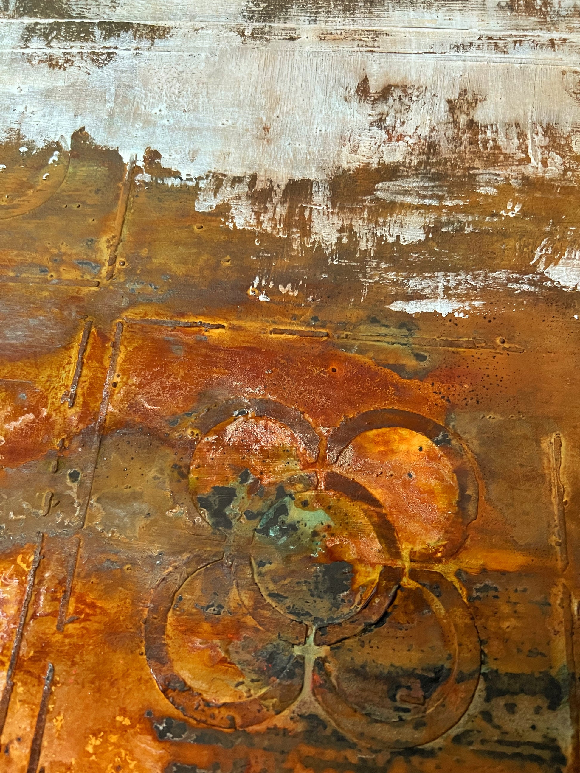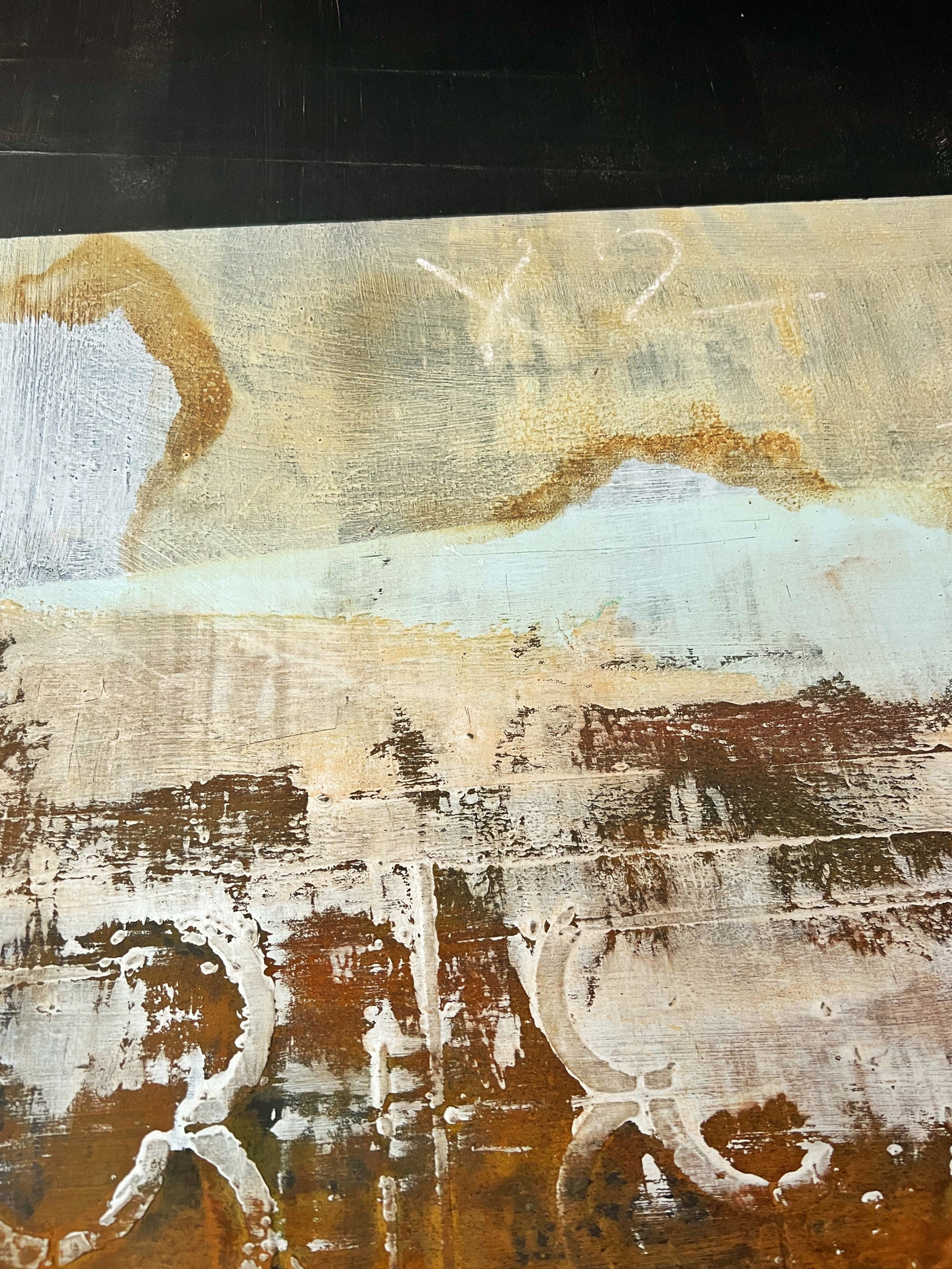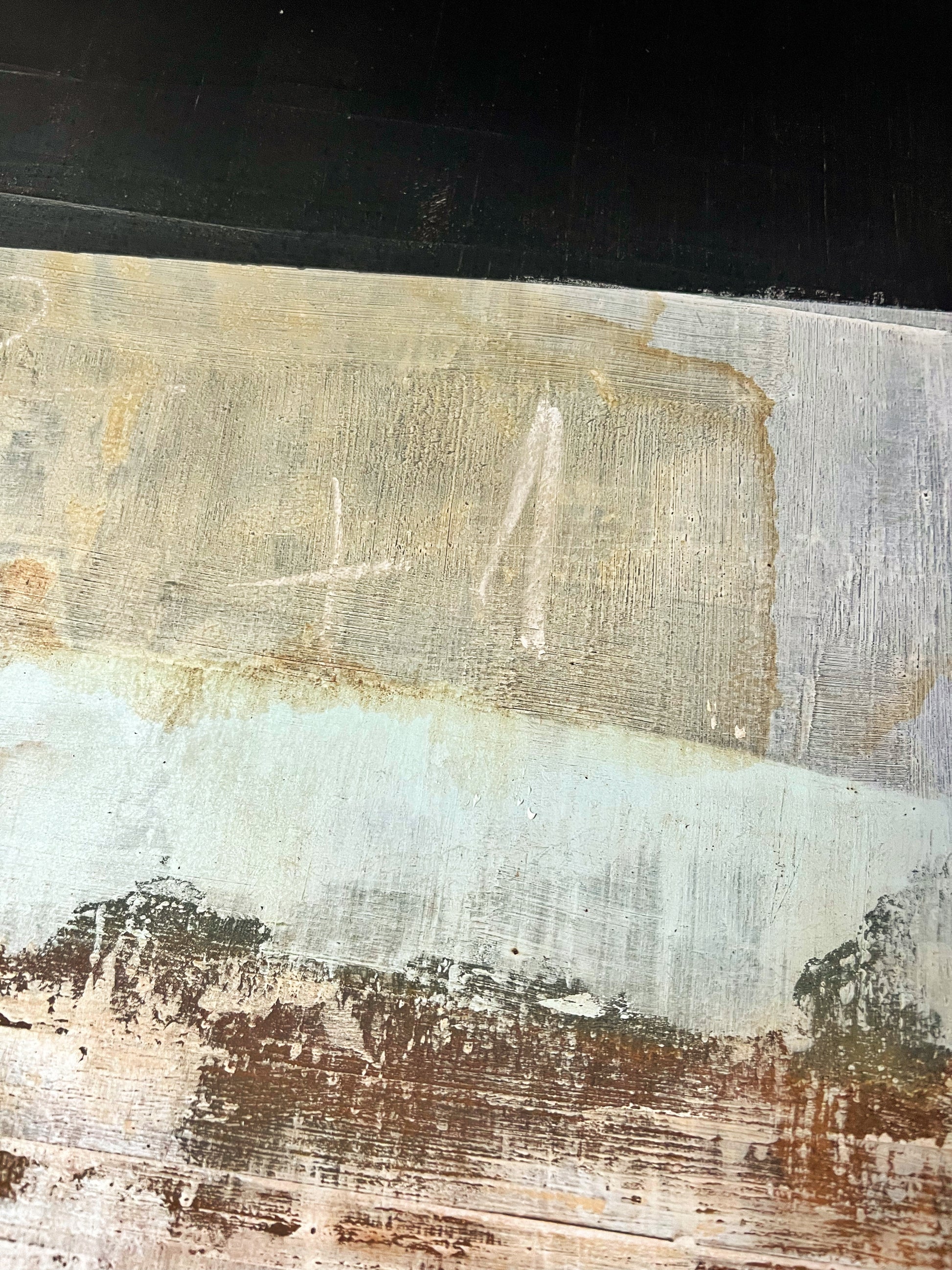 My work delves into the essence of contemporary art, expressed through minimalist canvases enriched with organic, tactile qualities. Each piece invites a journey into natural harmony, where earthy tones and subtle corrosion effects evoke a serene yet powerful connection to the natural world.